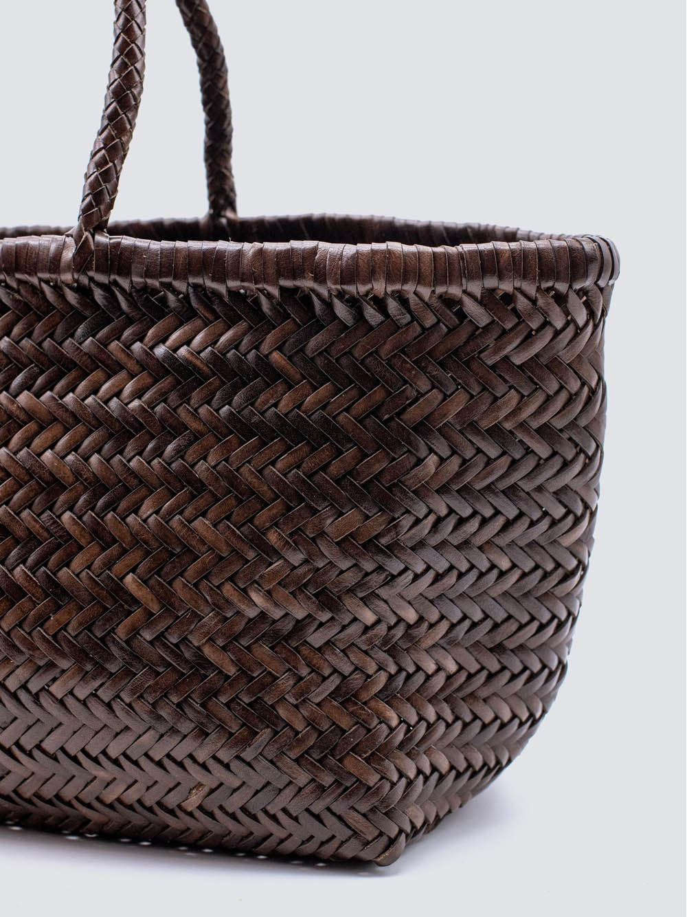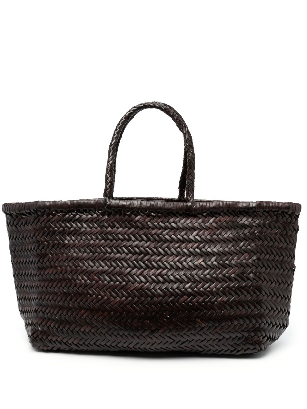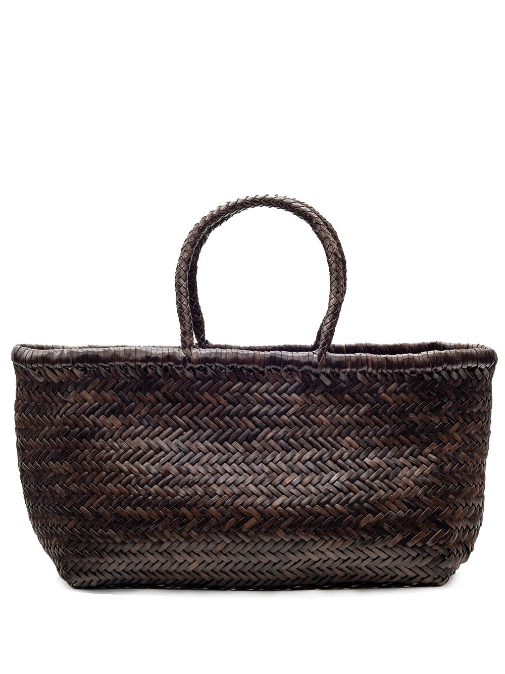 Borsa marrone Bamboo Triple Jump Big di Dragon Diffusion in pelle con due manici e trama intrecciata.