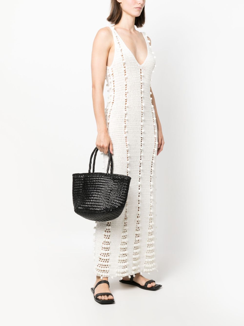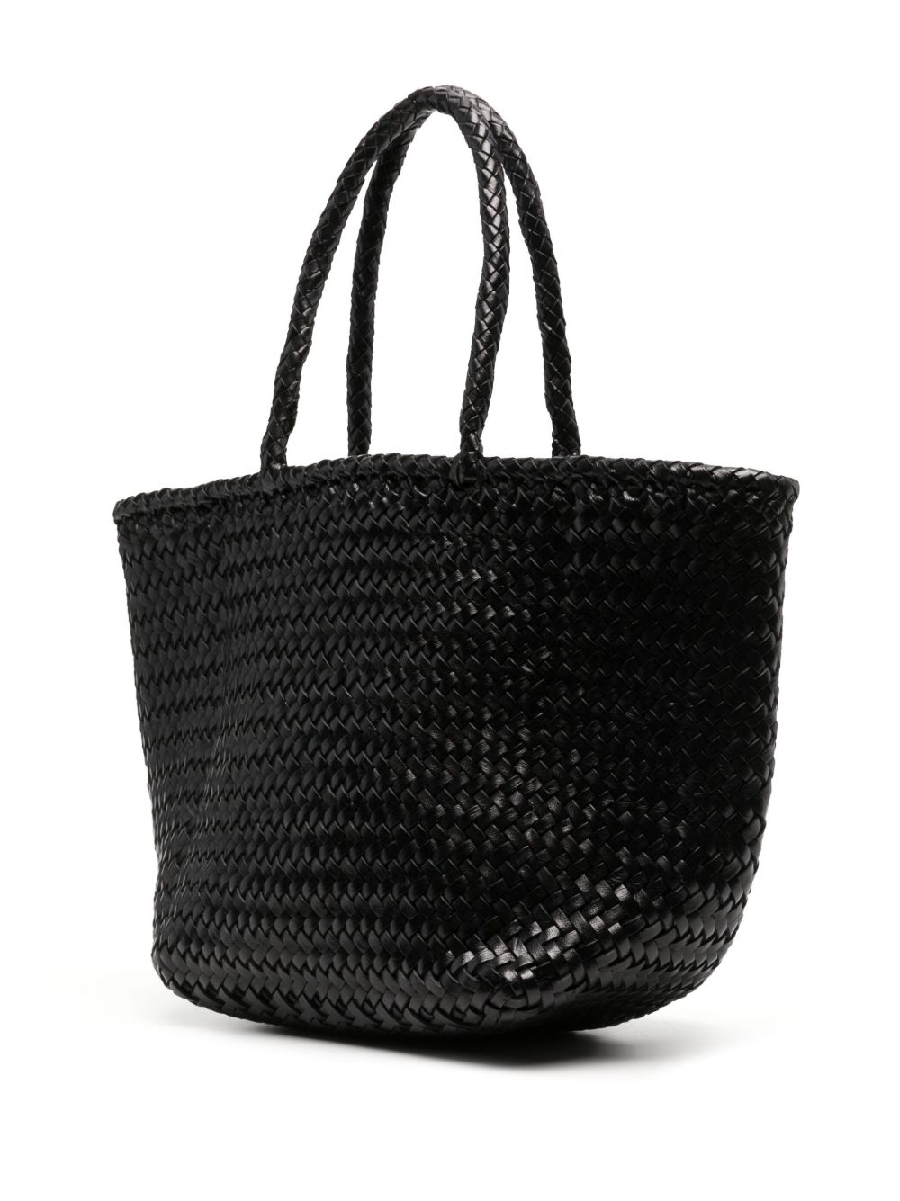 Borsa nera Grace Baskett Small di Dragon Diffusion in pelle con due manici e trama intrecciata.