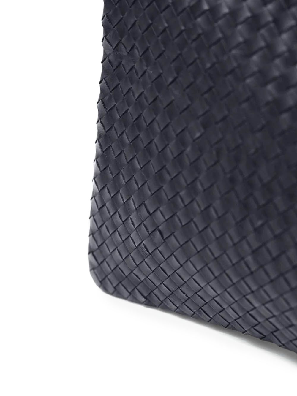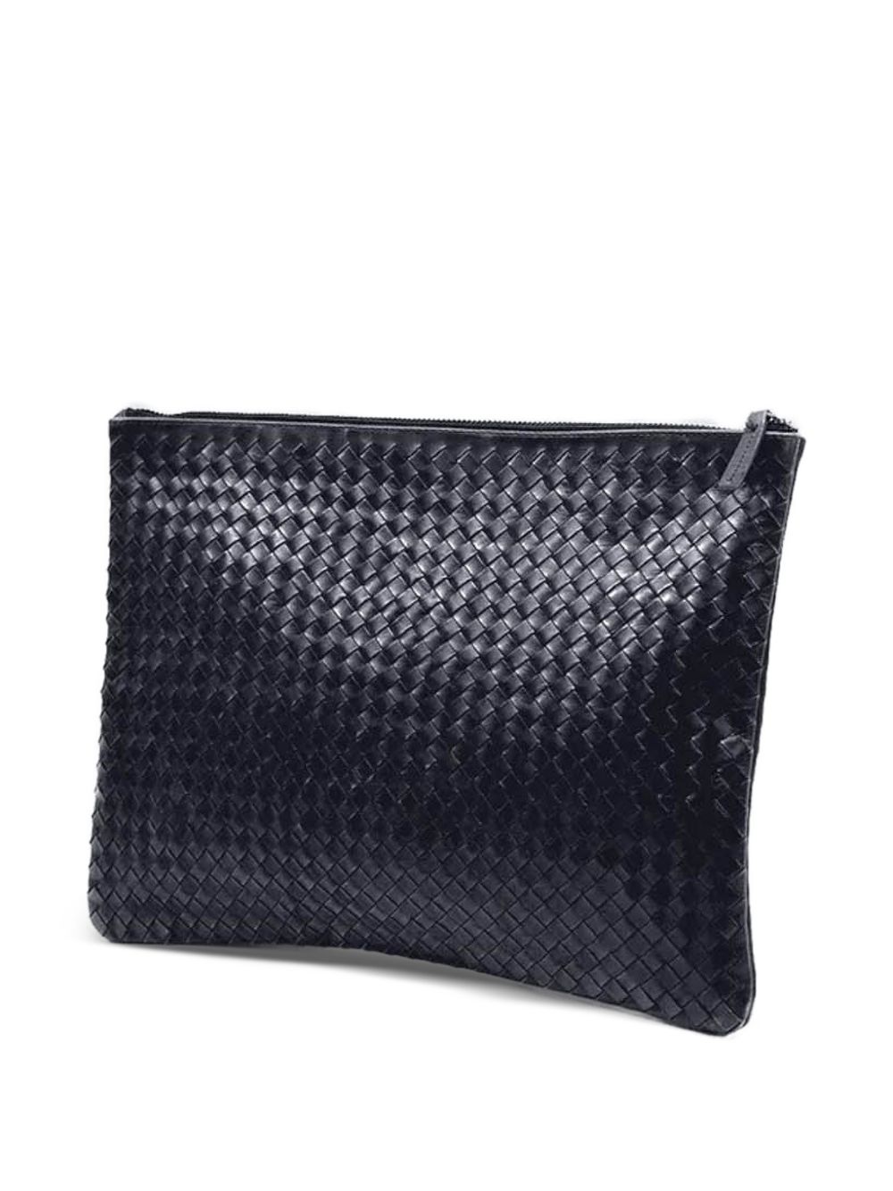 Pochette nera A4 di Dragon Diffusion in pelle con chiusura superiore con zip e trama intrecciata.