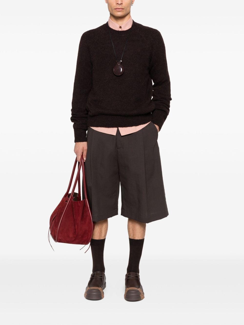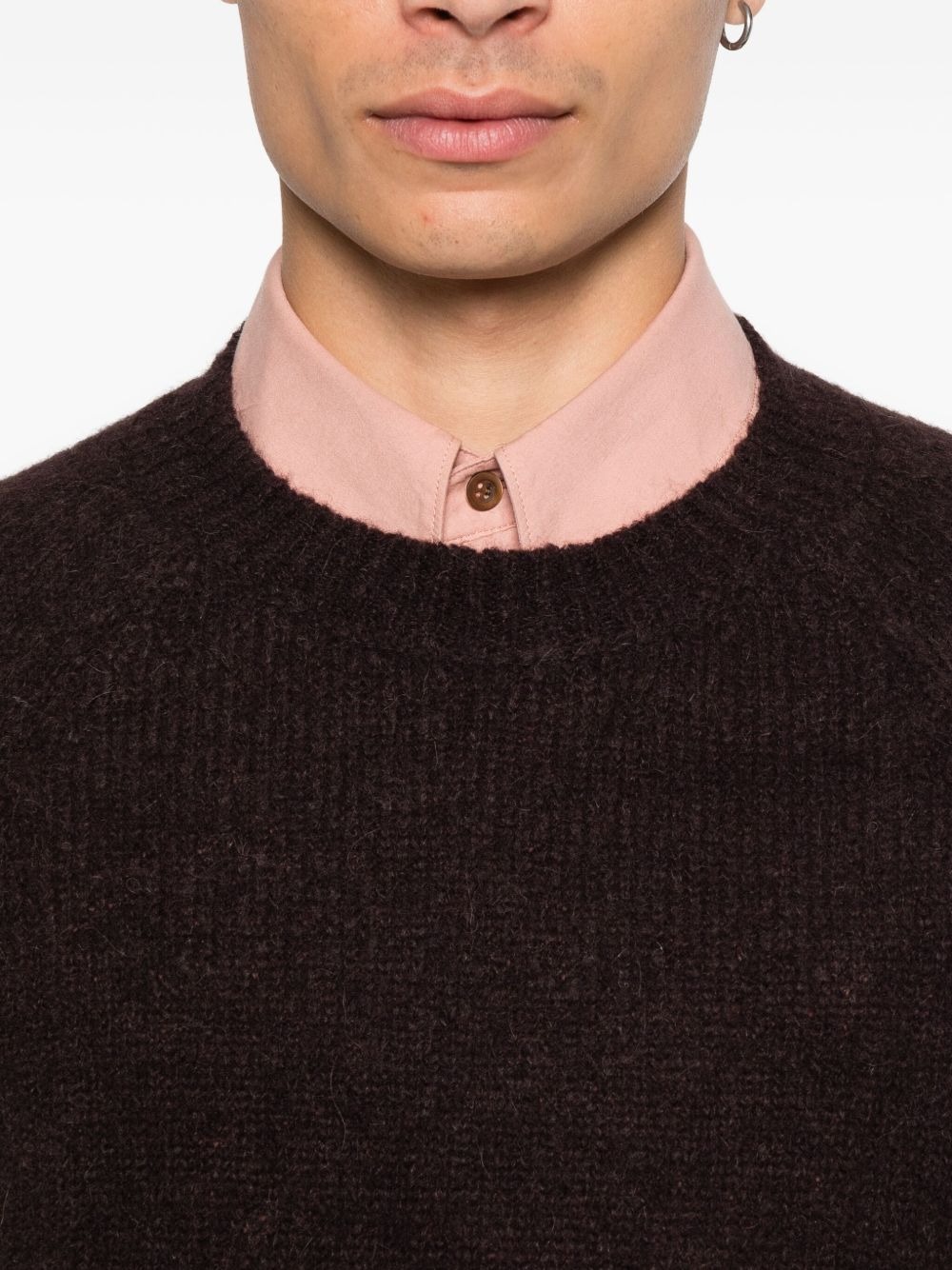 Maglione marrone scuro 03250 Melbourne 2709 M.K. di Dries Van Noten in lana con gricollo, maniche lunghe e orlo dritto.