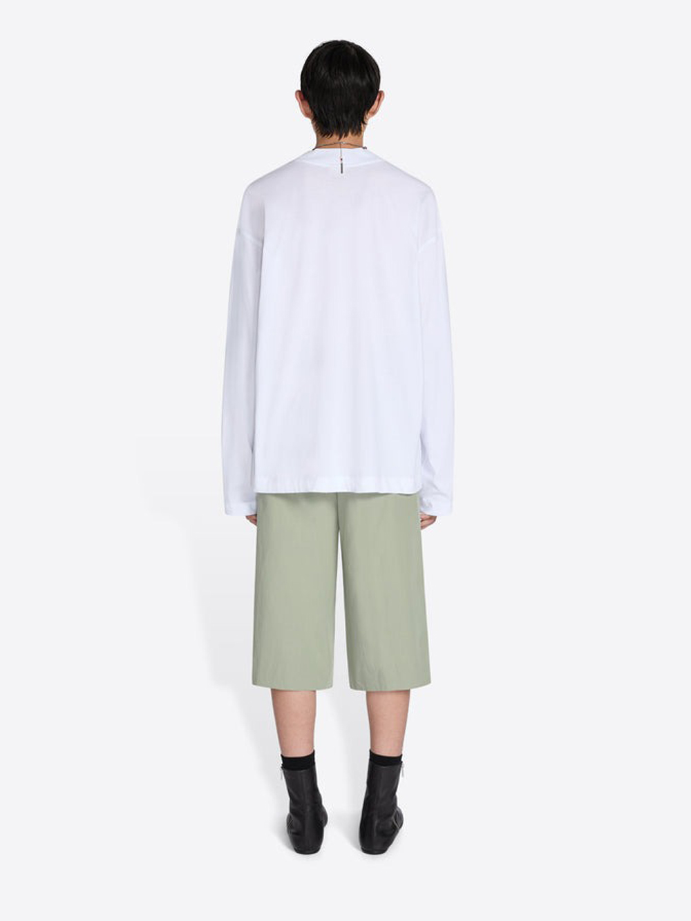 T-shirt bianca Heger di Dries Van Noten in cotone con girocollo, manica lunga e orlo dritto.