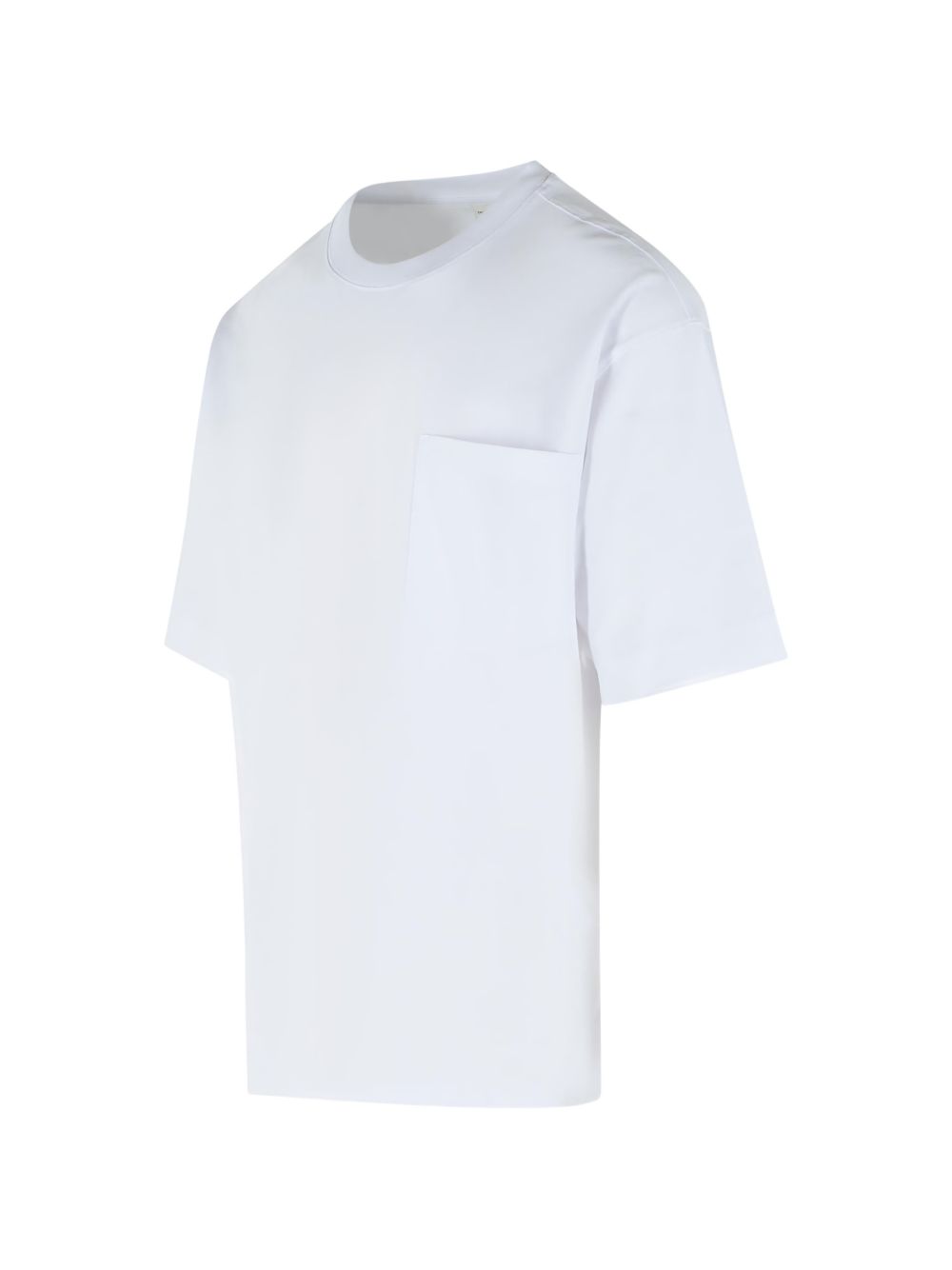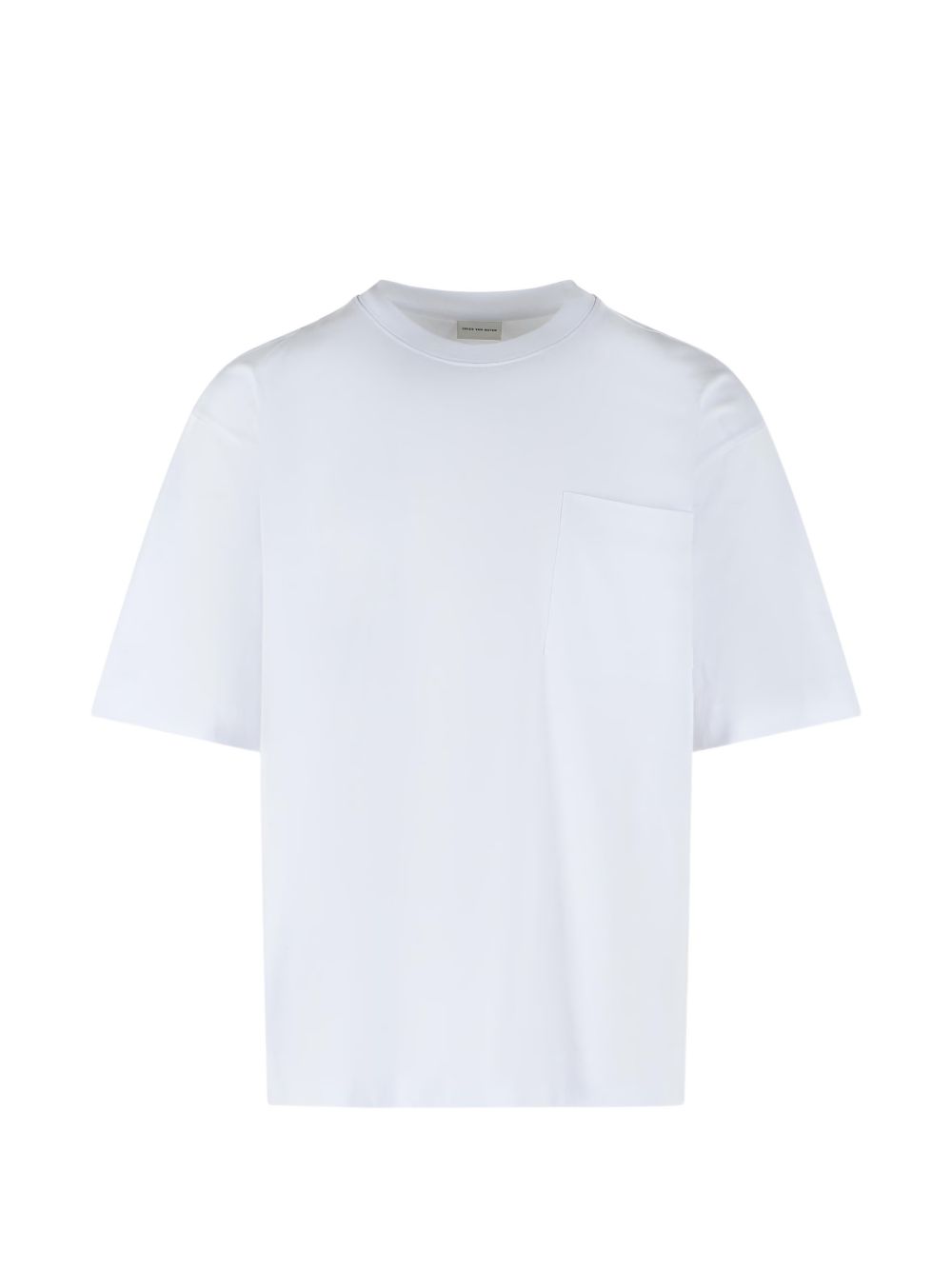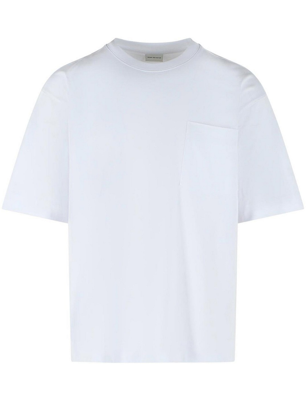 T-shirt bianca Hesocc di Dries Van Noten in cotone con girocollo, manica corta, tasca sul petto e orlo dritto.