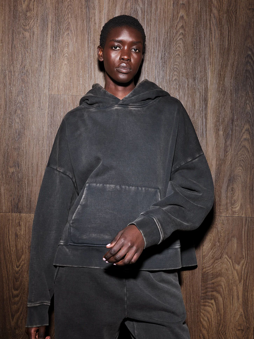 Felpa nera di Entire Studios in cotone con cappuccio, tasca a canguro, vestibilità oversized e orlo e polsini a coste.