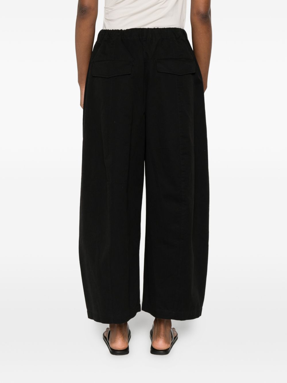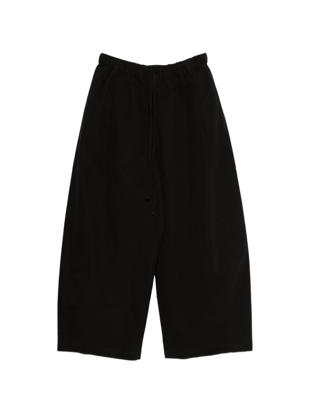 Pantaloni neri di Entire Studios in cotone con vita con coulisse, tasche laterali, tasche posteriori con patta e orlo dritto.