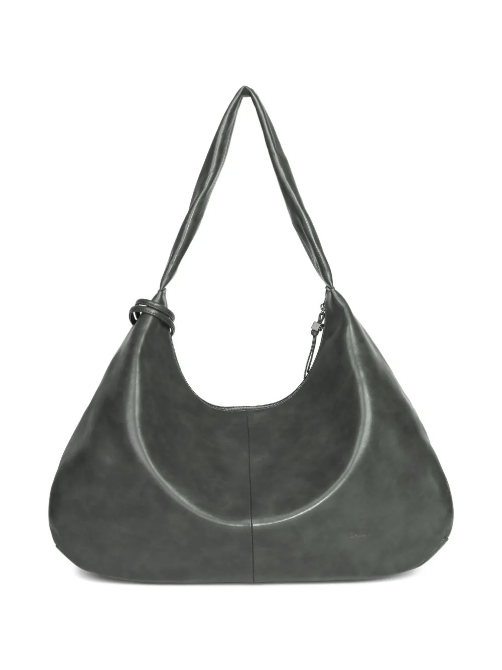 Borsa grigia XXL Hobo di Ganni in pelle con design morbido, portachiavi con logo rimovibile, dettaglio con cuciture curve e due tracolle.