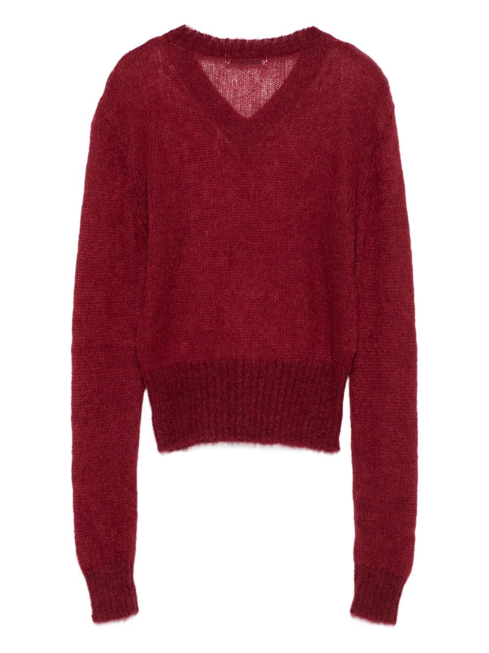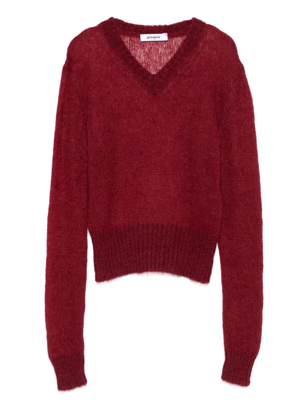 maglia borgogna Mun di gimaguas in misto lana con scollo a V, manica lunga, orlo e polsini a coste.