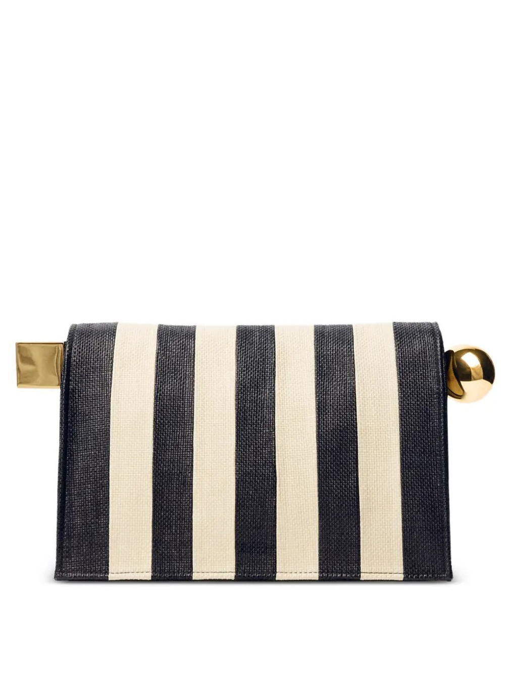 Borsa natural e nera La pochette Rond Carré di Jacquemus in pelle con chiusura magnetica, tasca interna e applicazione con logo color oro.