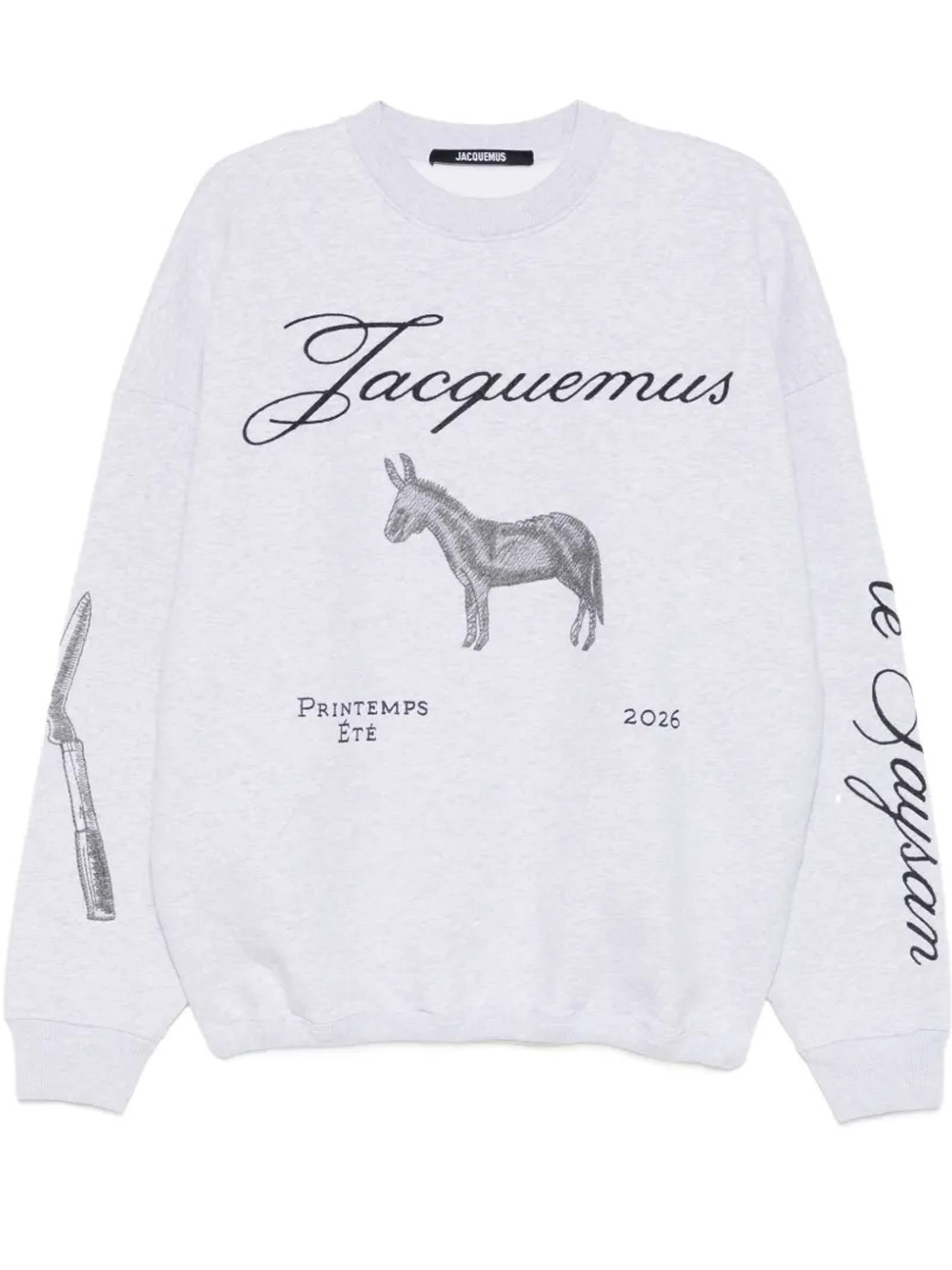 Felpa grigia Le Sweatshirt Ane di Jacquemus in cotone con stampa grafica, maniche lunghe, girocollo, orlo a coste e polsini a coste.