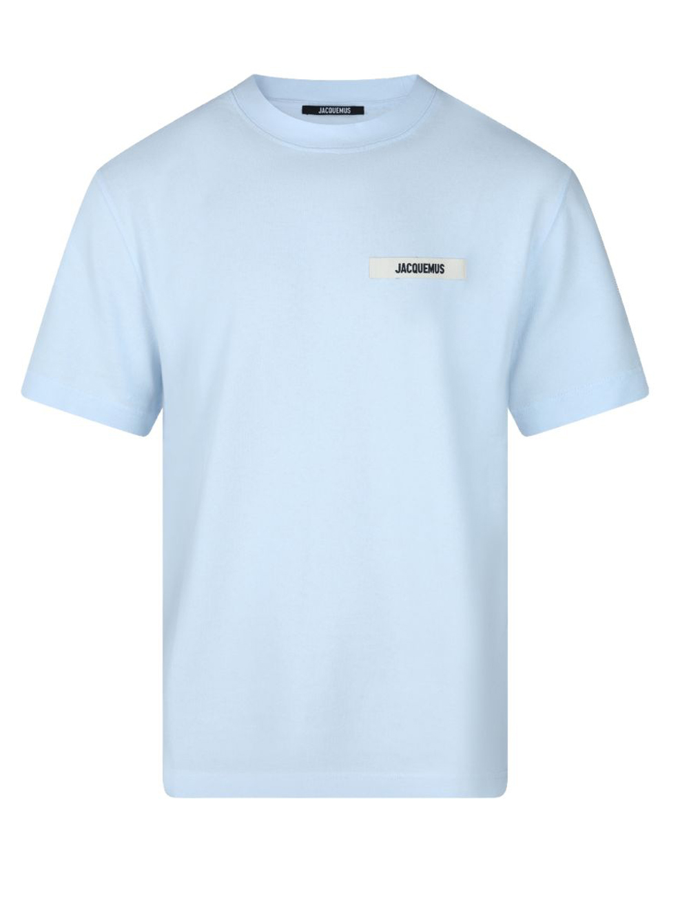 T-shirt azzurra Le T-shirt Gros Grain di Jacquemus in cotone con gircollo, applicazione con logo e orlo dritto.