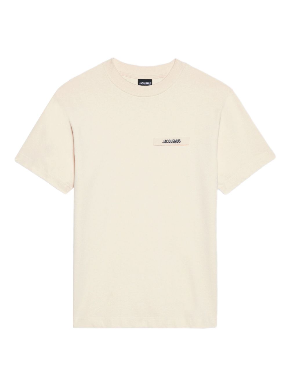 T-shirt beige Le T-shirt Gros Grain di Jacquemus in cotone con gircollo, applicazione con logo e orlo dritto.