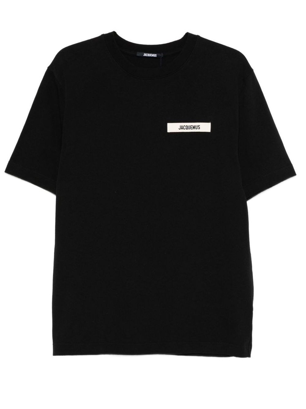 T-shirt nera Le T-shirt Gros Grain di Jacquemus in cotone con gircollo, applicazione con logo e orlo dritto.