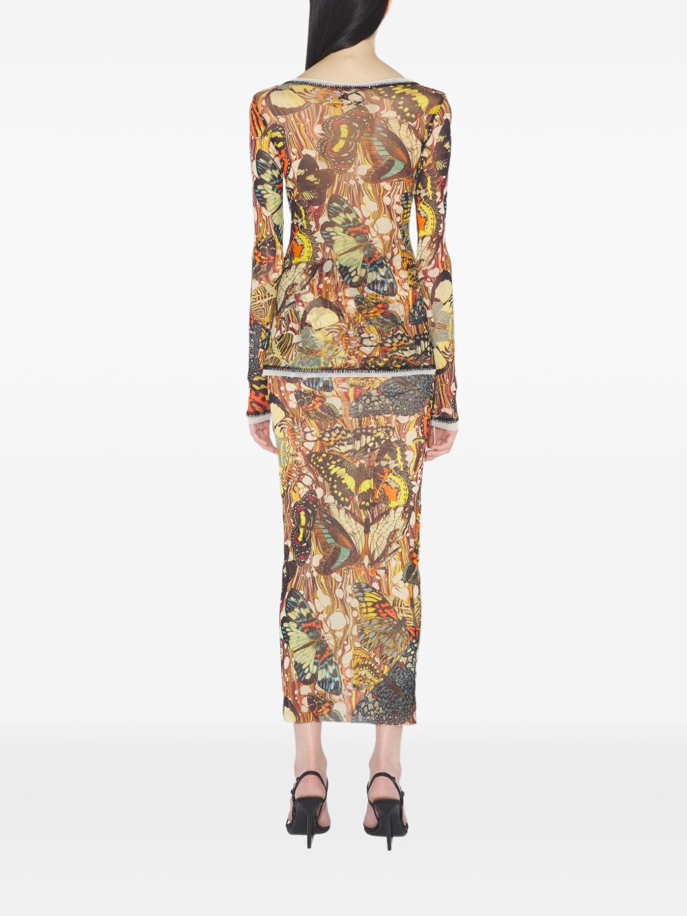 Top multicolor di Jean Paul Gaultier in poliammide con girocollo, chiusura frontale con lacci, maniche lunghe, stampa all-over e orlo dritto.
