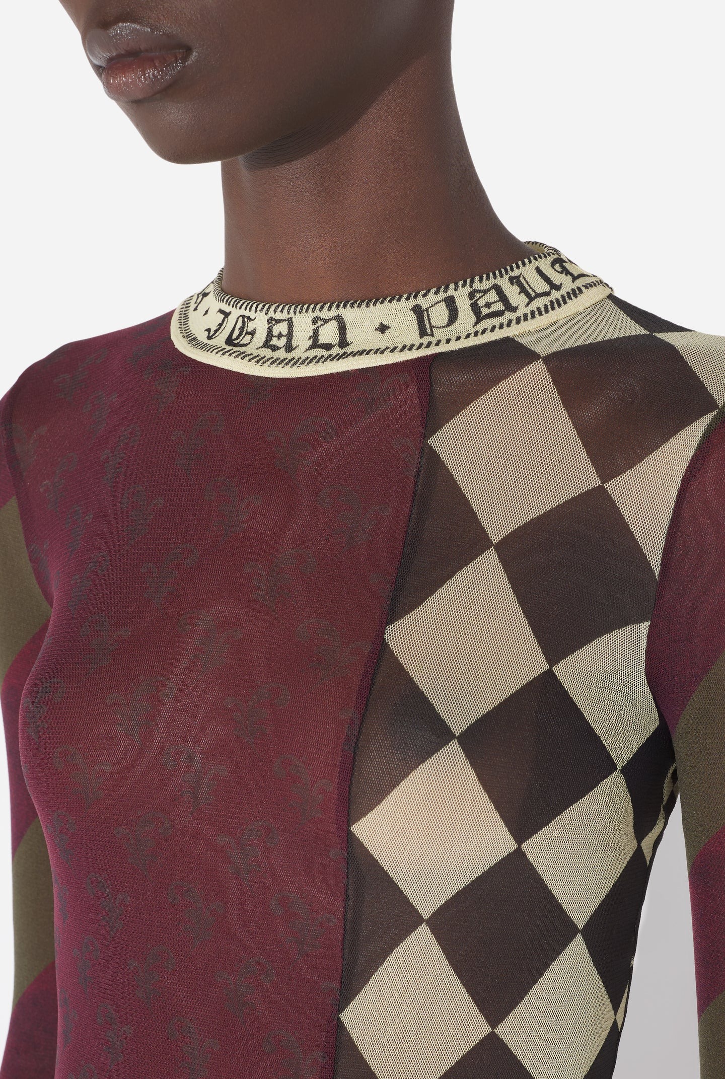 Top multicolor di Jean Paul Gaultier in poliammide con girocollo, maniche lunghe, stampa all-over e orlo dritto.