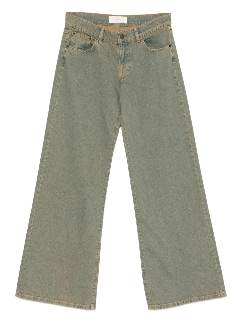Jeans beige Kyoto di Jeanerica in cotone con vita con passanti, chiusura frontale con bottoni e zip, gamba ampia e orlo dritto.