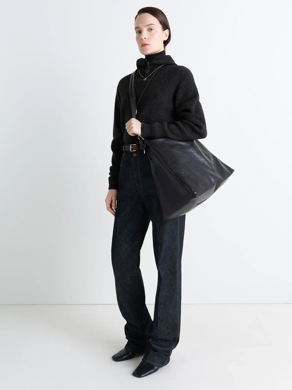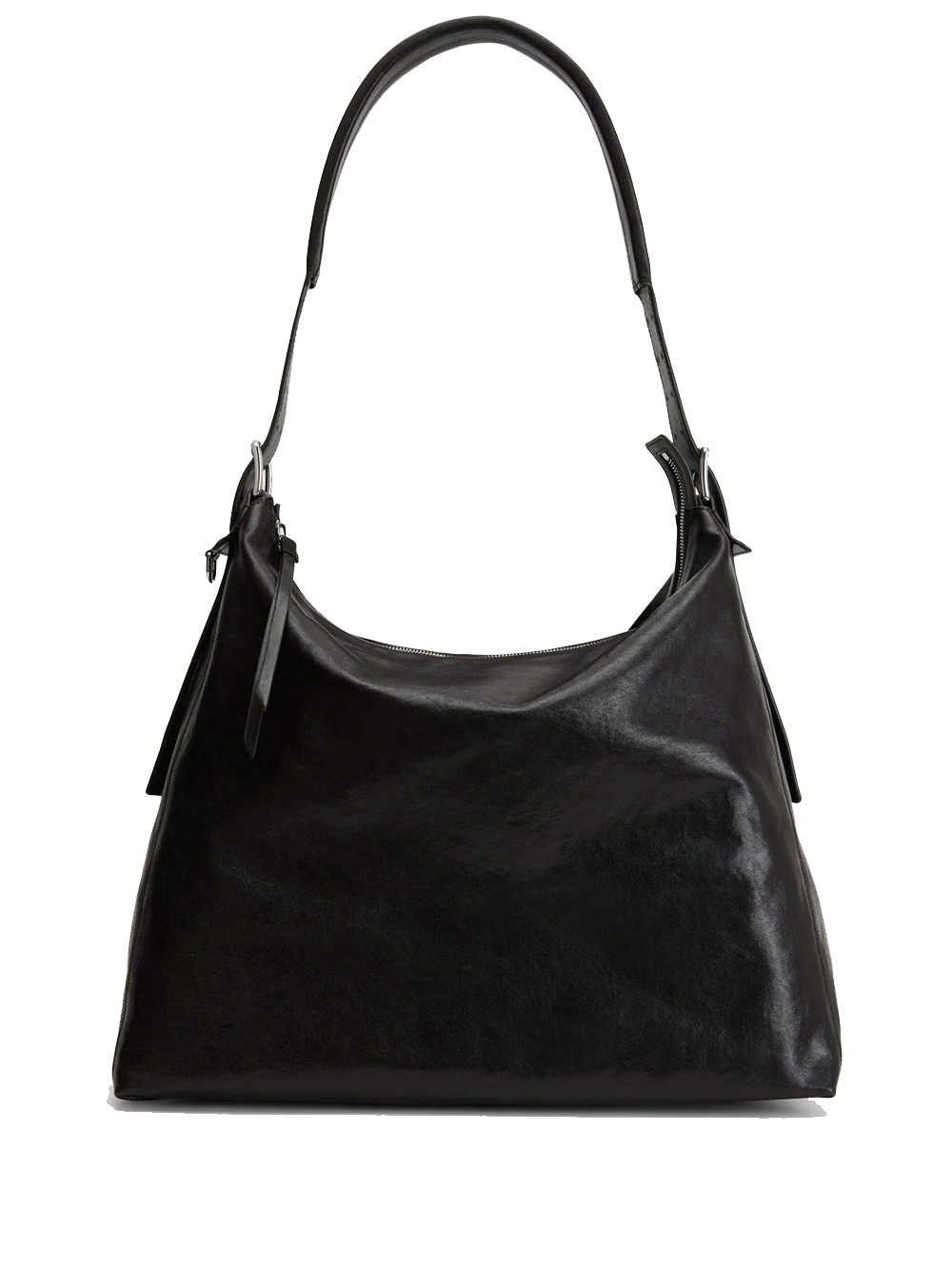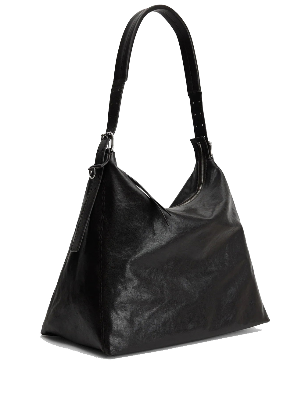 Borsa marrone scuro (Dark Chocolate) Belted Hobo di Lemaire in pelle con tracolla regolabile rimovibile a effetto cintura, chiusura con zip con tirante in pelle, interno con tasca con zip; struttura morbida e silhouette squadrata.