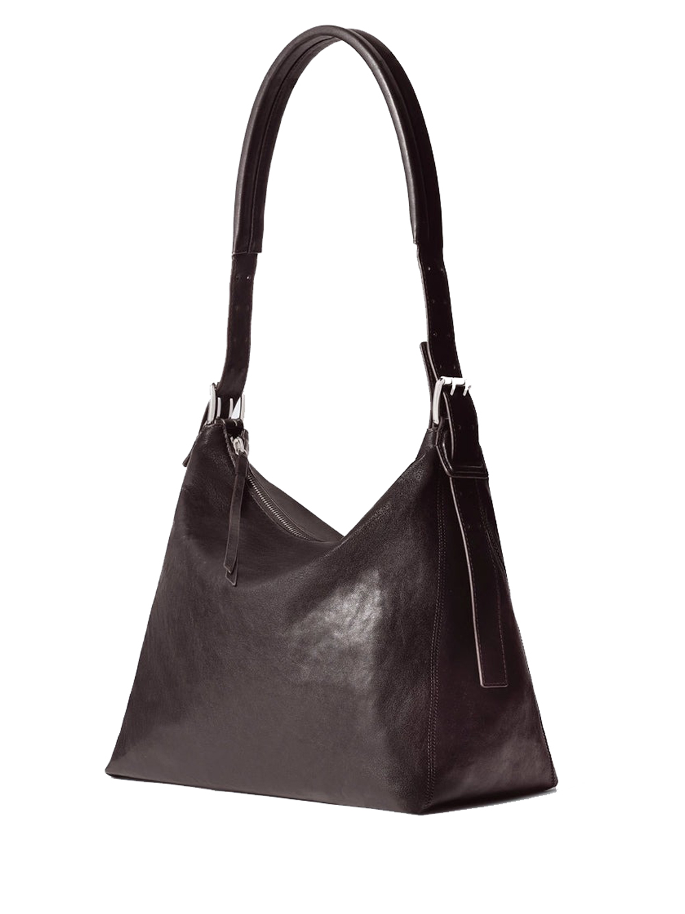 Borsa marrone scuro (Dark Chocolate) Small Belted Hobo di Lemaire in pelle con tracolla regolabile rimovibile a effetto cintura, chiusura con zip con tirante in pelle, interno con tasca con zip; struttura morbida e silhouette squadrata.