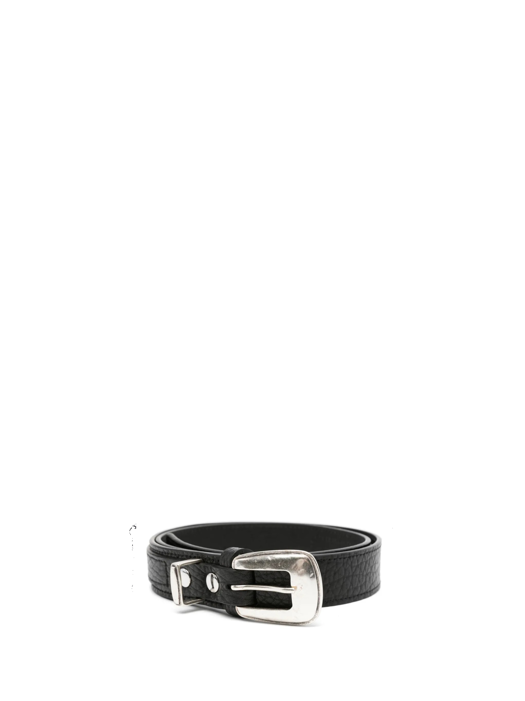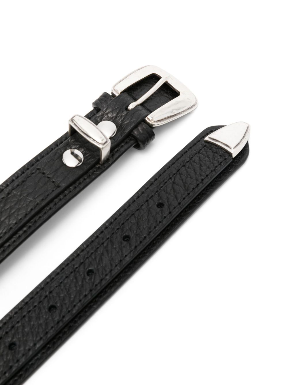 Cintura nera Minimal Western di Lemaire in pelle con chiusura con fibbia in metallo e punte metalliche.