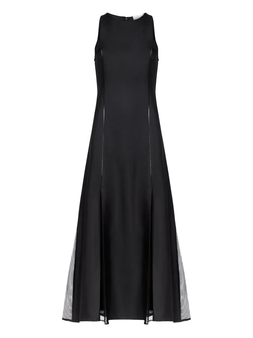 Abito nero di LouLou De Saison in seta con dettaglio con cuciture in pizzo, gonna svasata e orlo dritto.