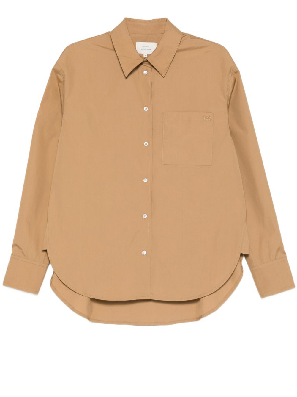 Camicia sabbia di LouLou De Saison in cotone con colletto alla francese, tasca frontale applicata, carré posteriore, orli con abbottonatura e orlo arrotondato.