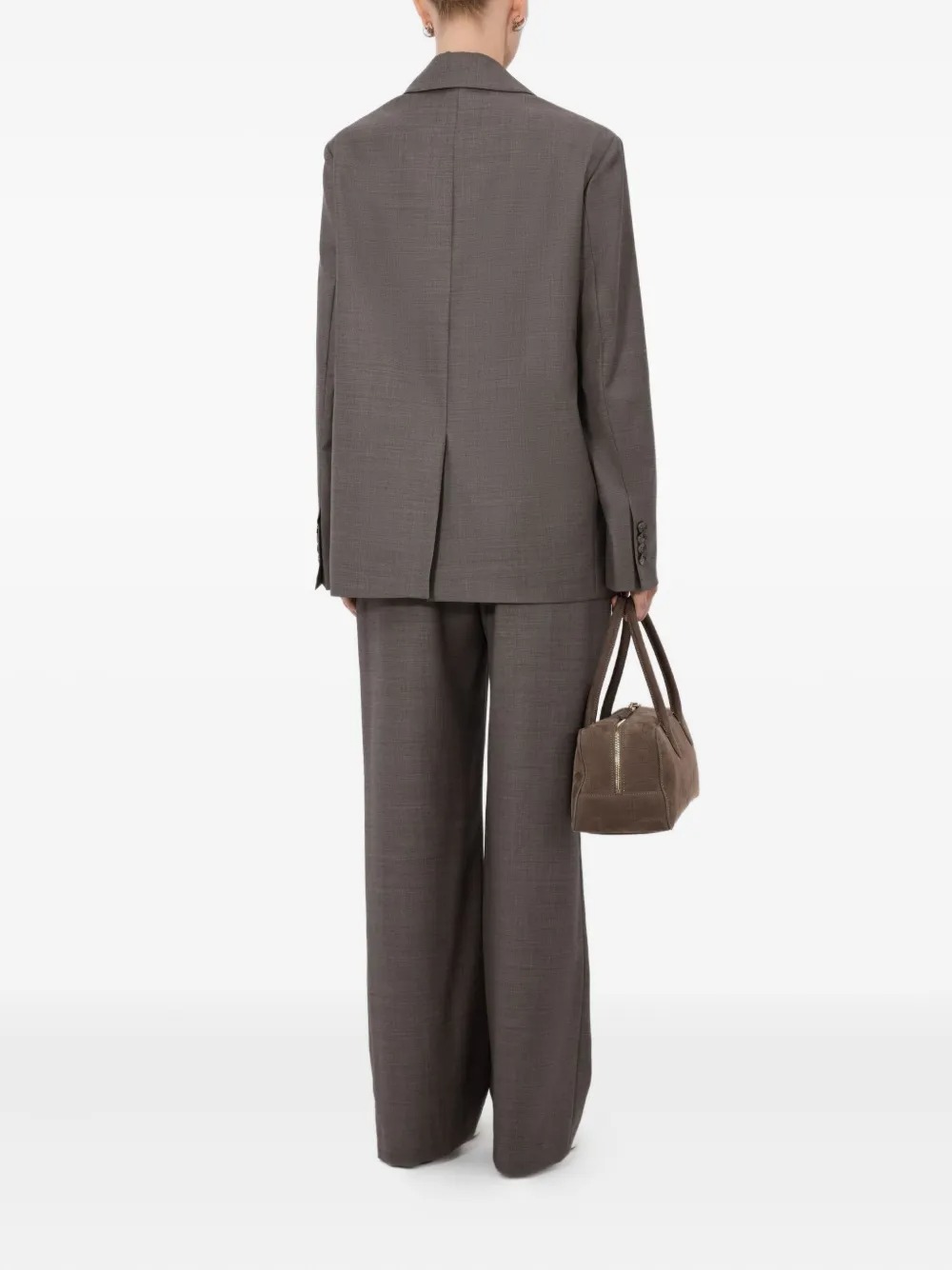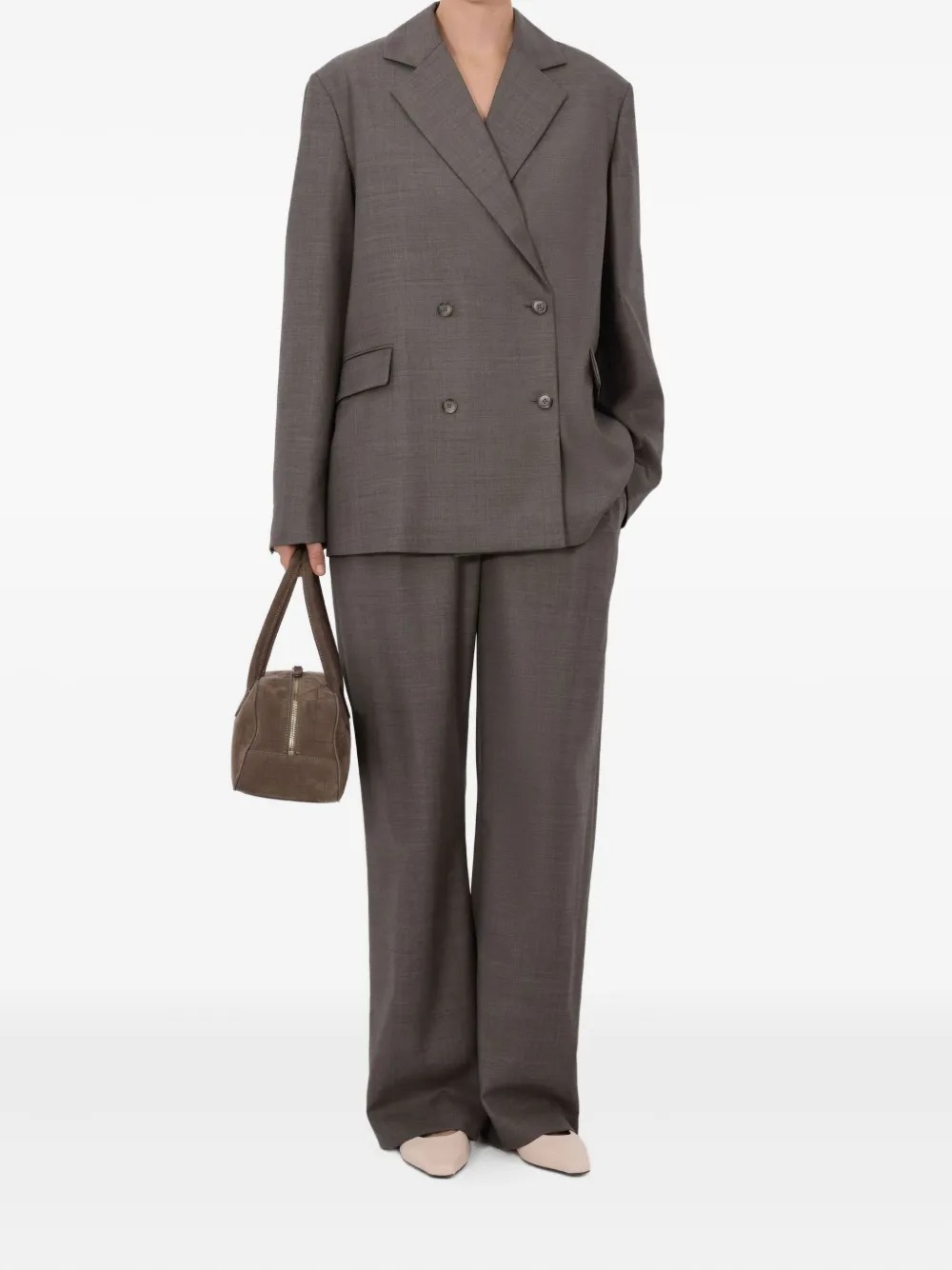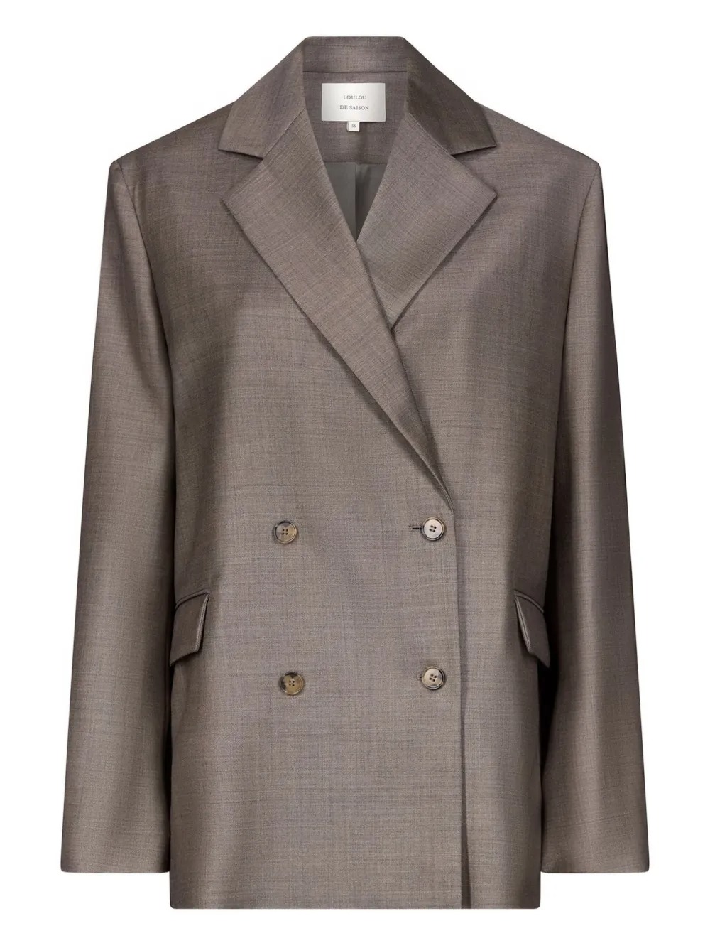 Giacca marrone di LouLou De Saison in lana con revers classici, doppiopetto, tasche ad aletta e orli con abbottonatura.