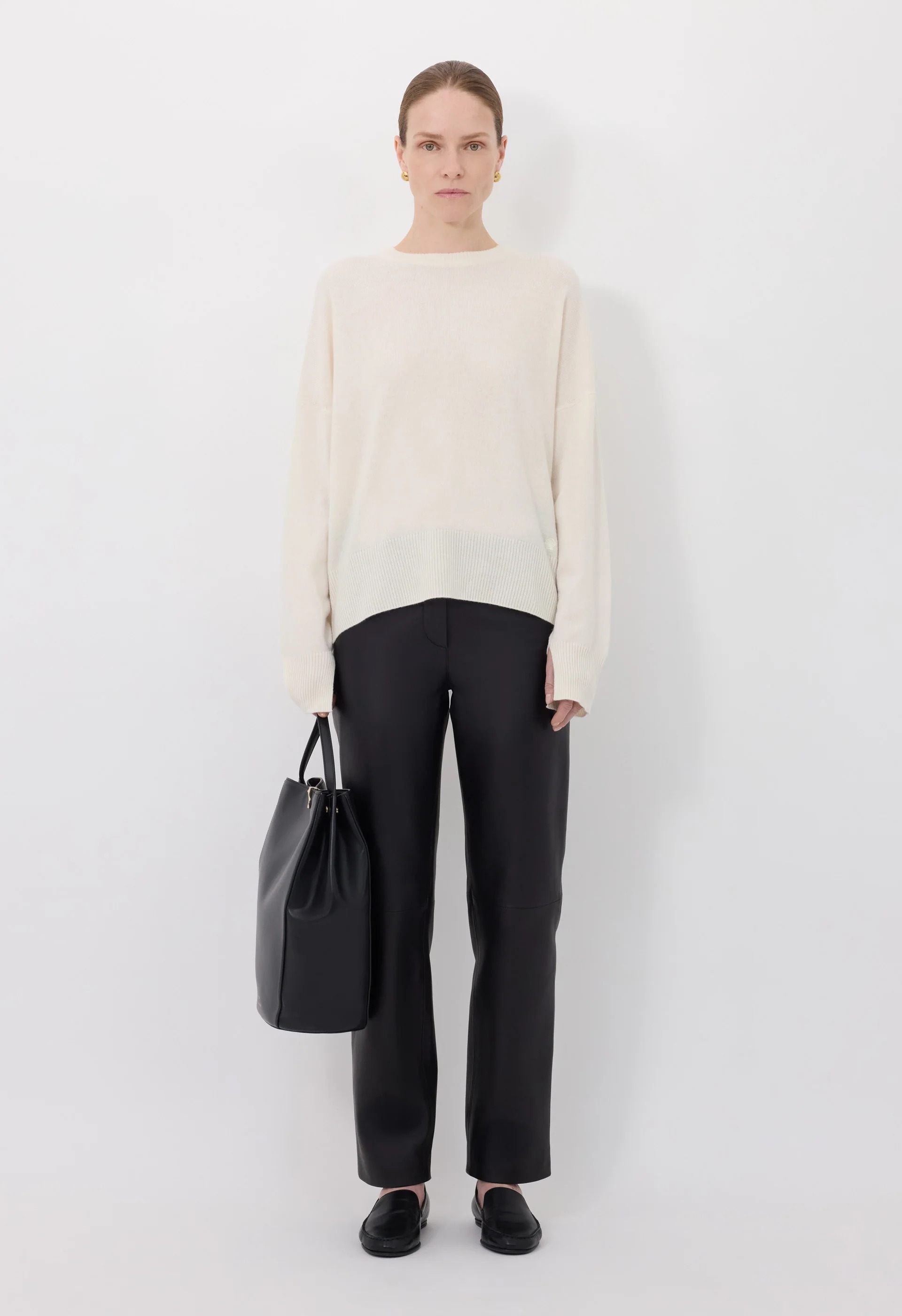Maglione avorio Anaa di LouLou De Saison in cashmere con girocolllo, maniche lunghe, orlo e polsini a coste.