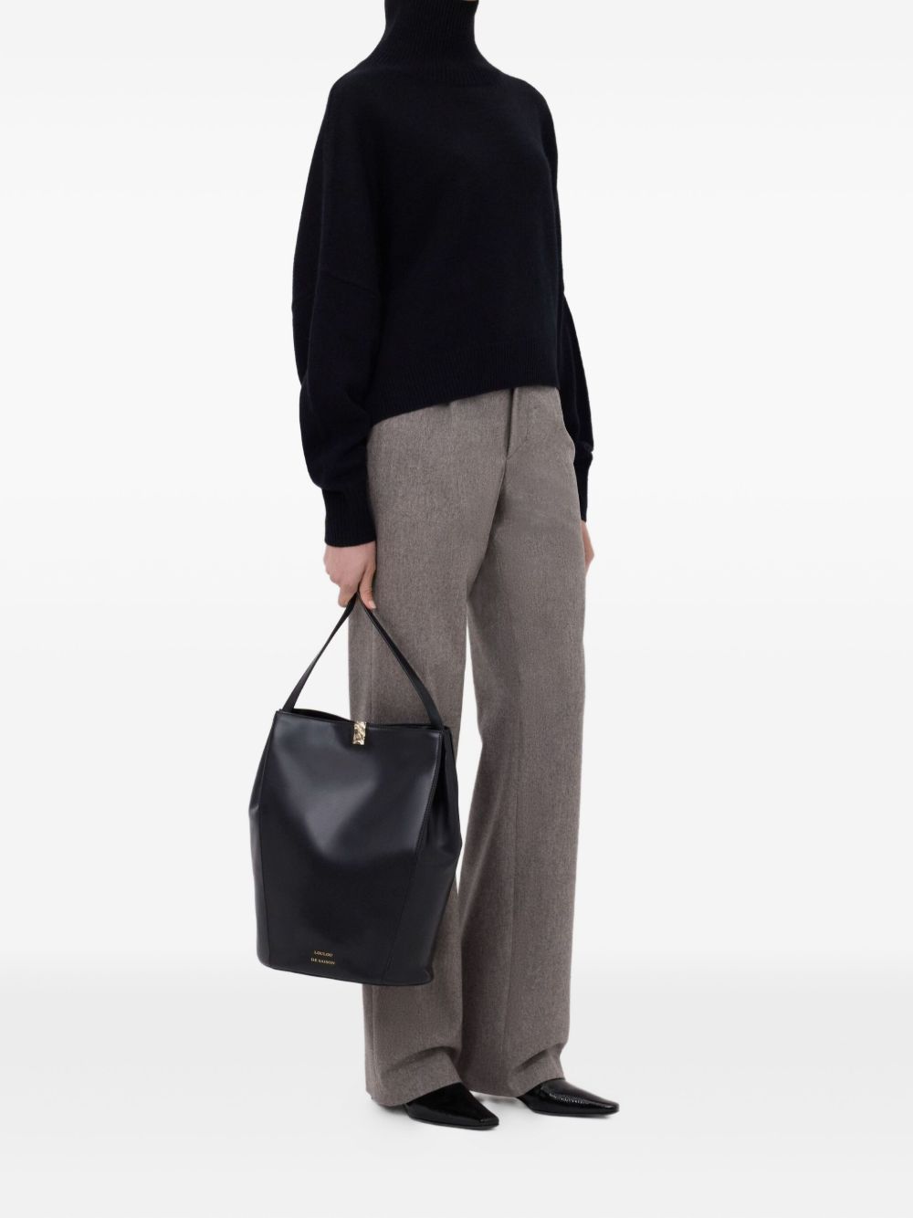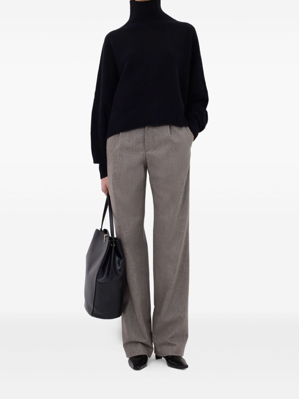 Maglione nero Luke di LouLou De Saison in lana con collo alto, maniche lunghe, orlo e polsini a coste.