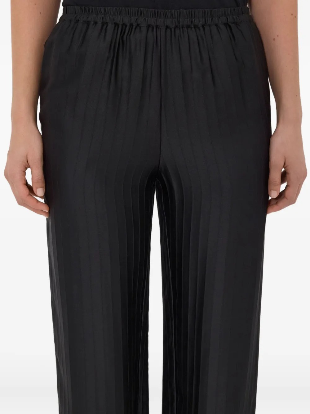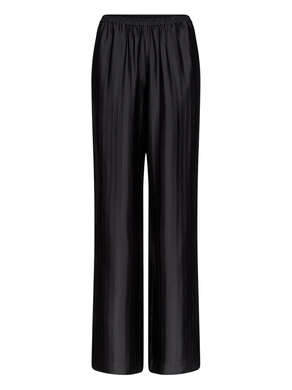 Pantaloni neri di LouLou De Saison in seta con motivo a righe, vita elasticizzata, tasche laterali con cuciture e tasche posteriori applicate.