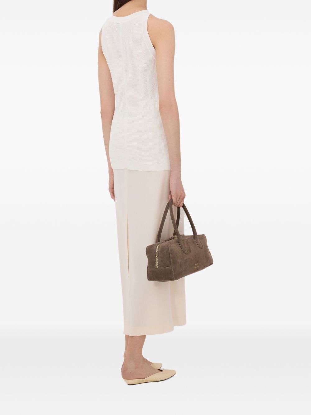 Top avorio di LouLou de Saison in viscosa con girocollo, senza maniche e orlo dritto.