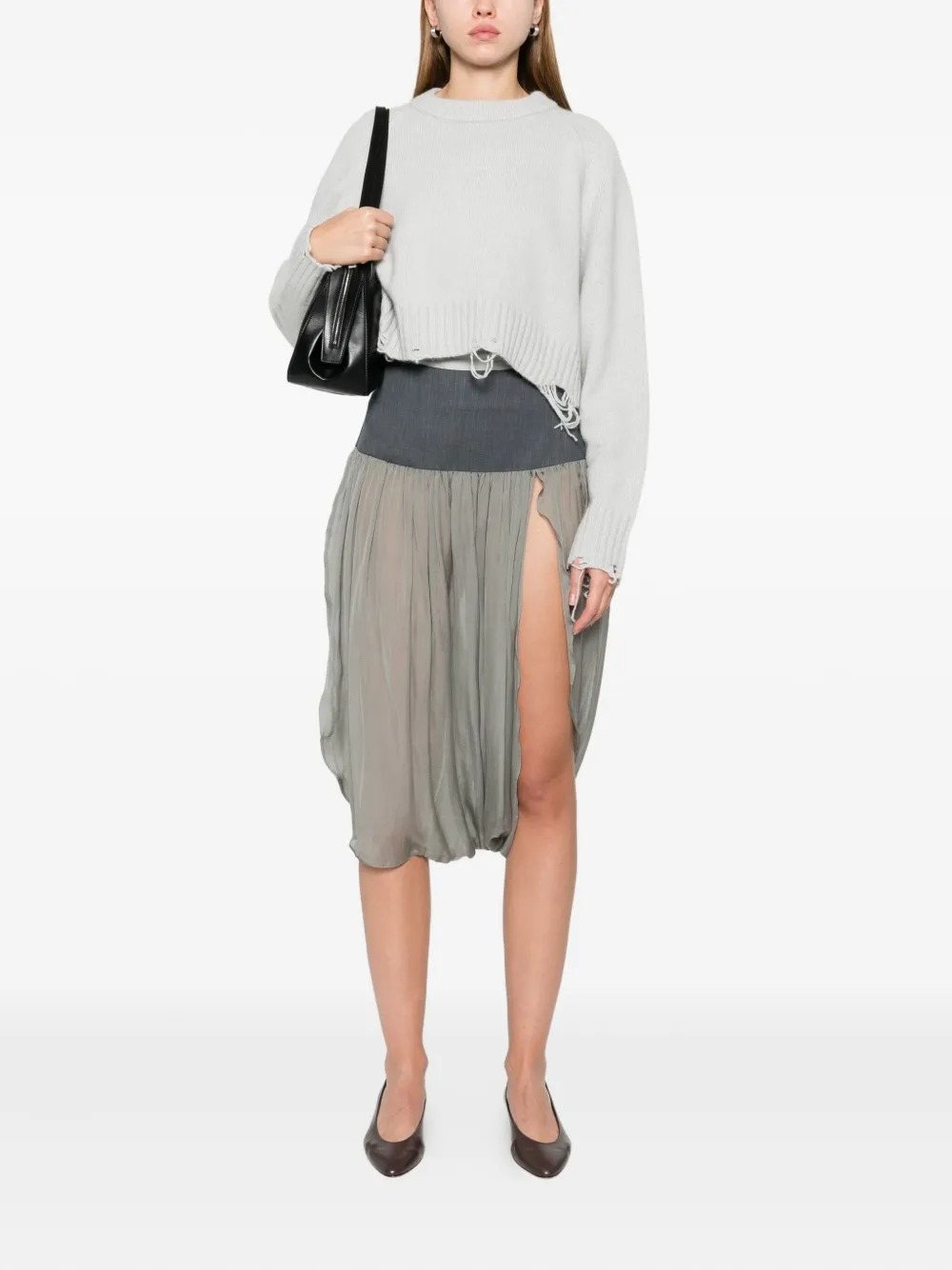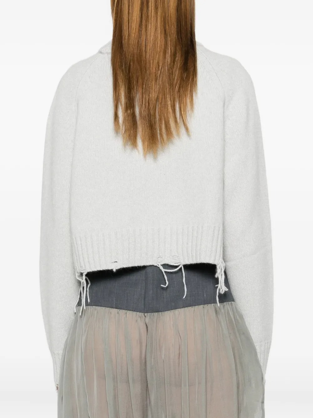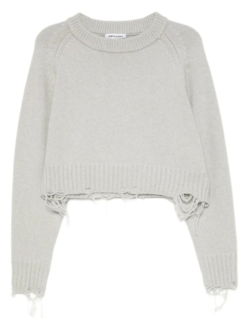 Maglione grigio Damage Cropped di Low Classic in tessuto con bordo con effetto vissuto, girocollo, maniche lunghe, lavorazione in maglia a coste e maniche raglan.