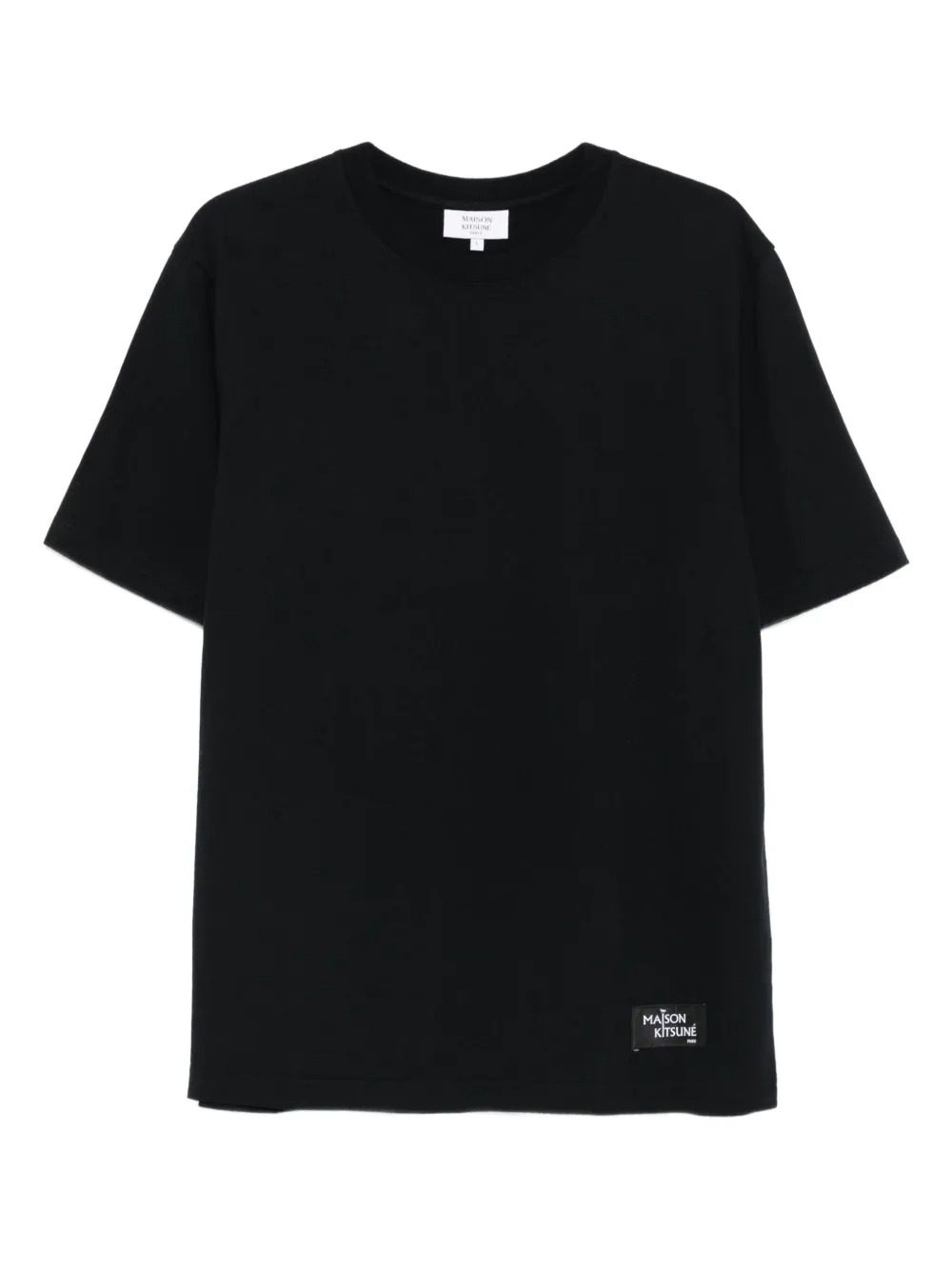 T-shirt nera di Maison Kitsuné in cotone con girocollo, manica corta, etichetta frontale, stampa sul retro e orlo dritto.