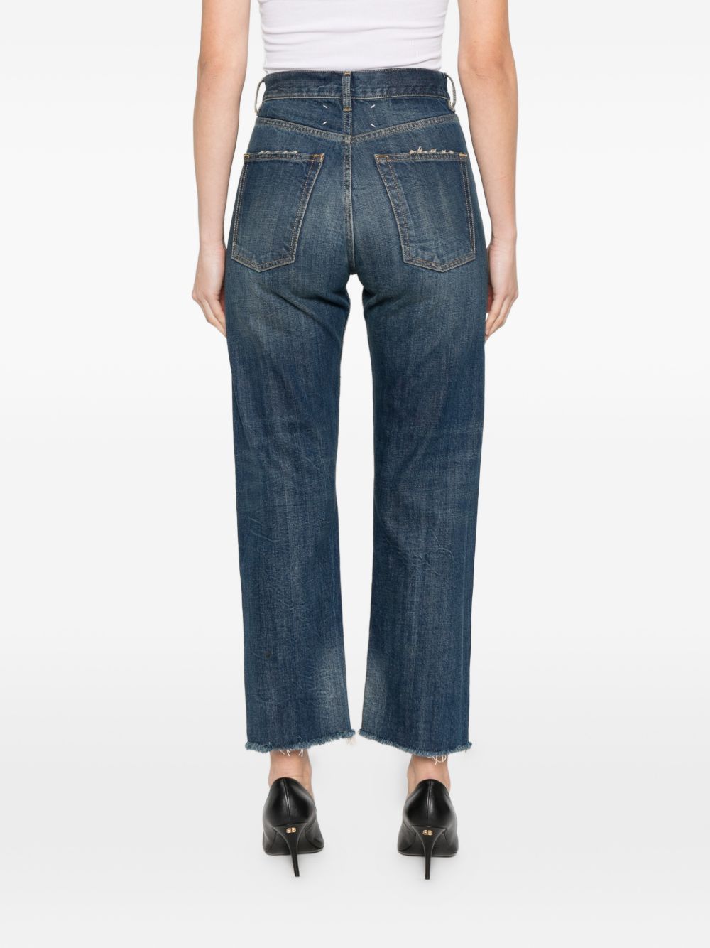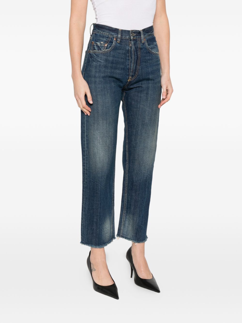 Jeans blu di Maison Margiela in cotone con orlo a taglio vivo, cinque tasche e effetto schiarito.