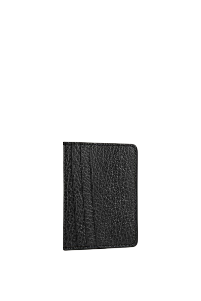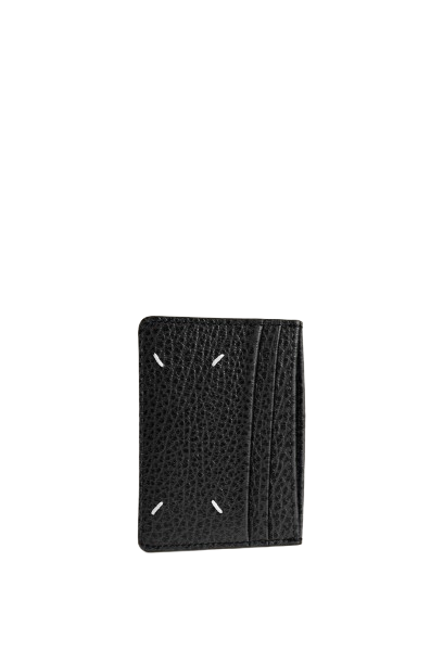 Portacarte nero in pelle a grana goffrata di Maison Margiela con cinque fessure per tessere e una sezione centrale con numeric logo all'interno.