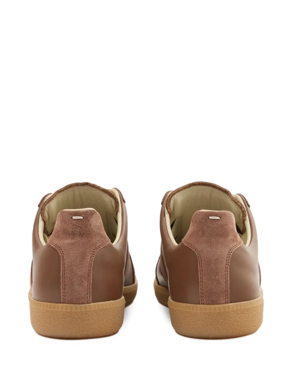 Sneakers marroni Replica di Maison Margiela in pelle con punta tonda, chiusura frontale con lacci, suola in gomma e logo sulla linguetta.