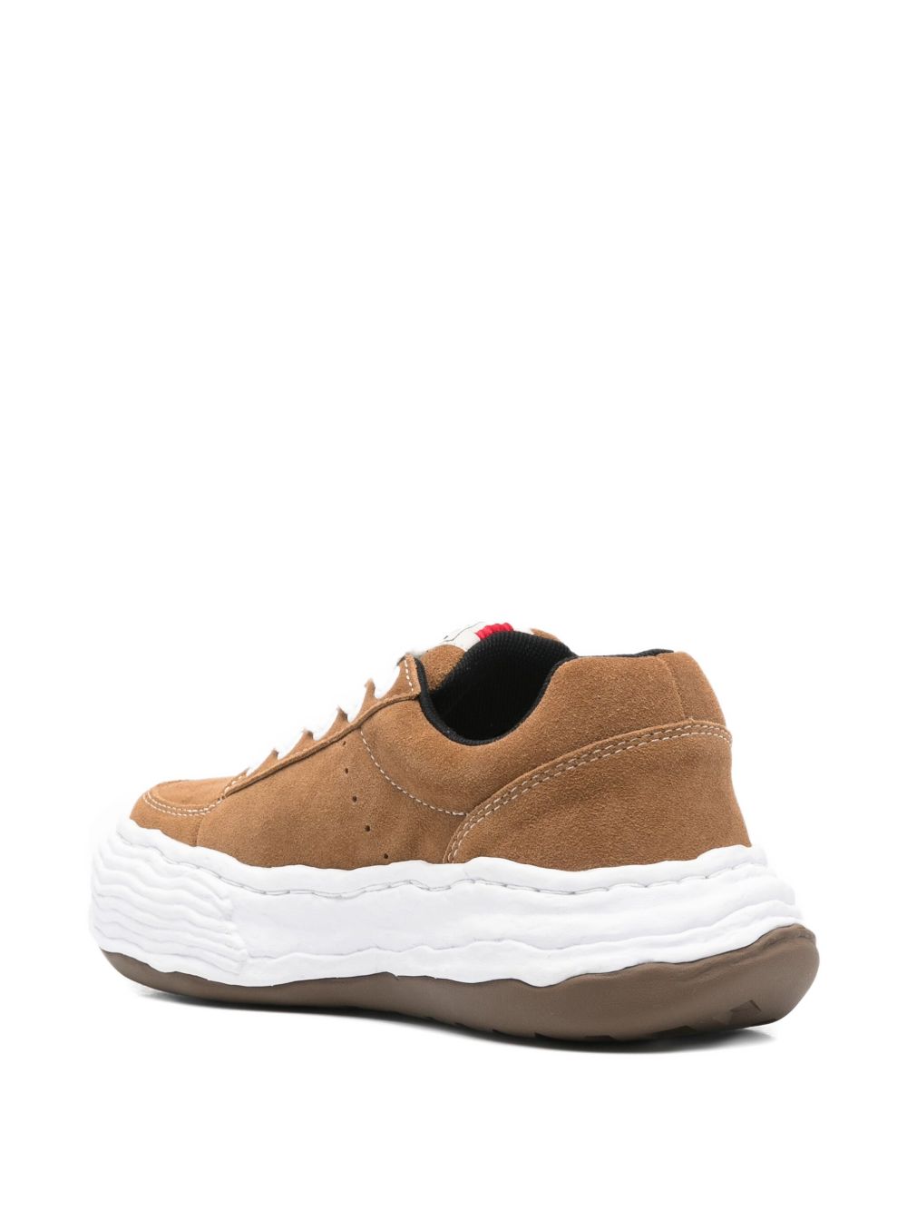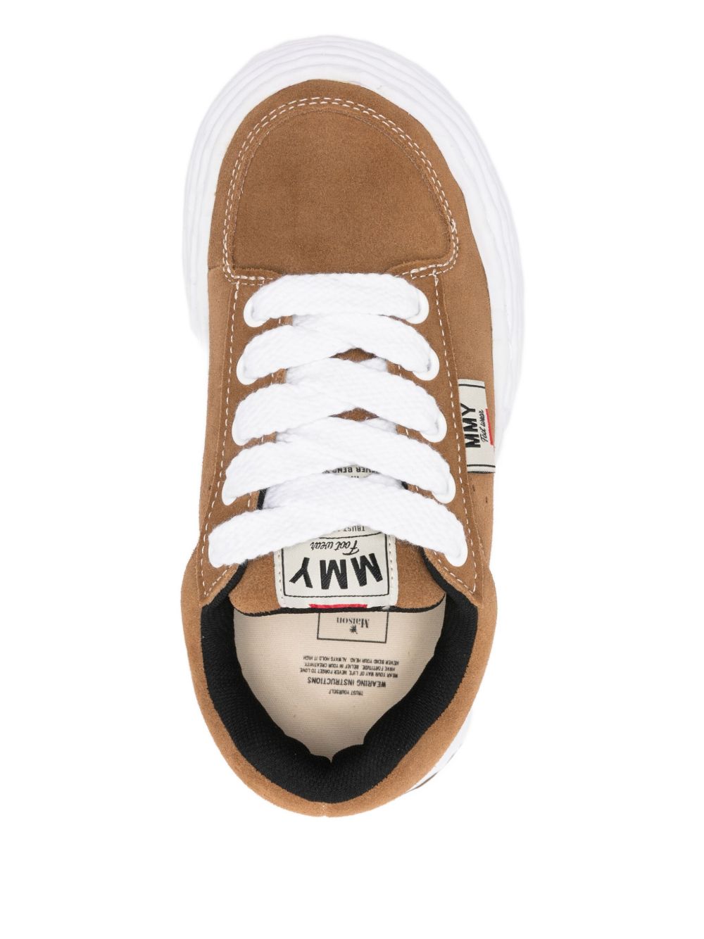 Sneakers marroni Oliver di Maison Mihara Yasuhiro in tessuto con punta tonda bianca, chiusura frontale con lacci larghi, etichetta con logo sulla linguetta e suola in gomma.