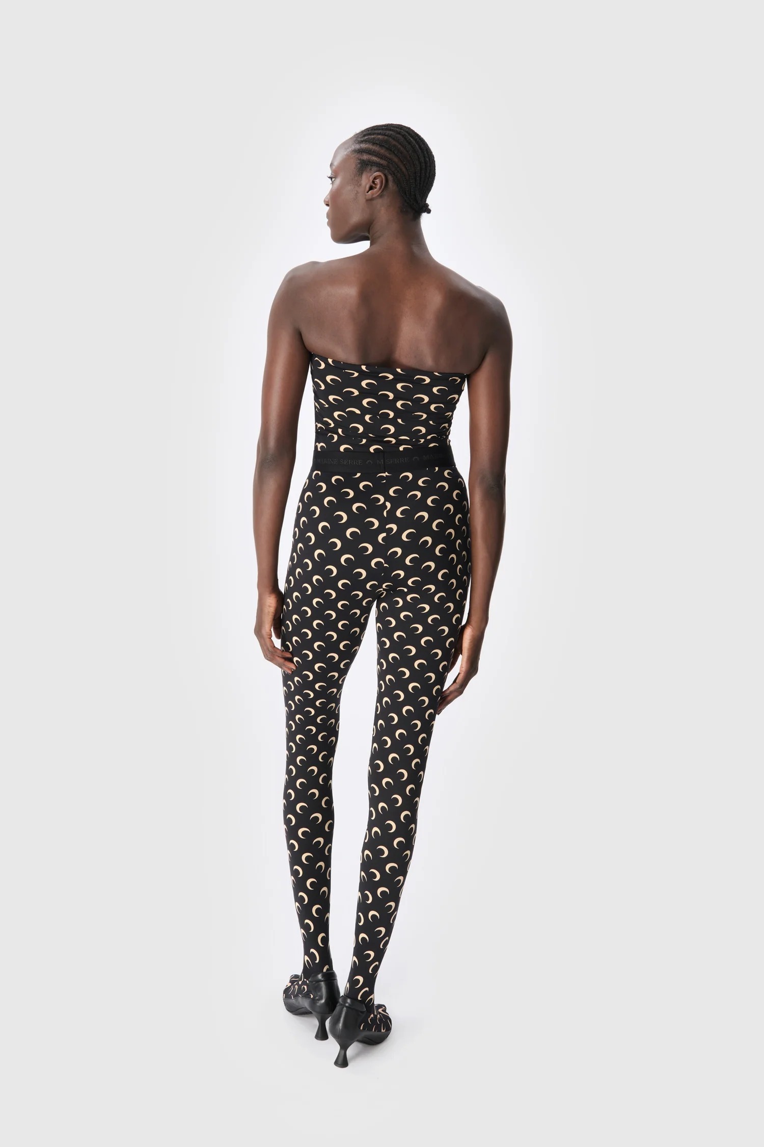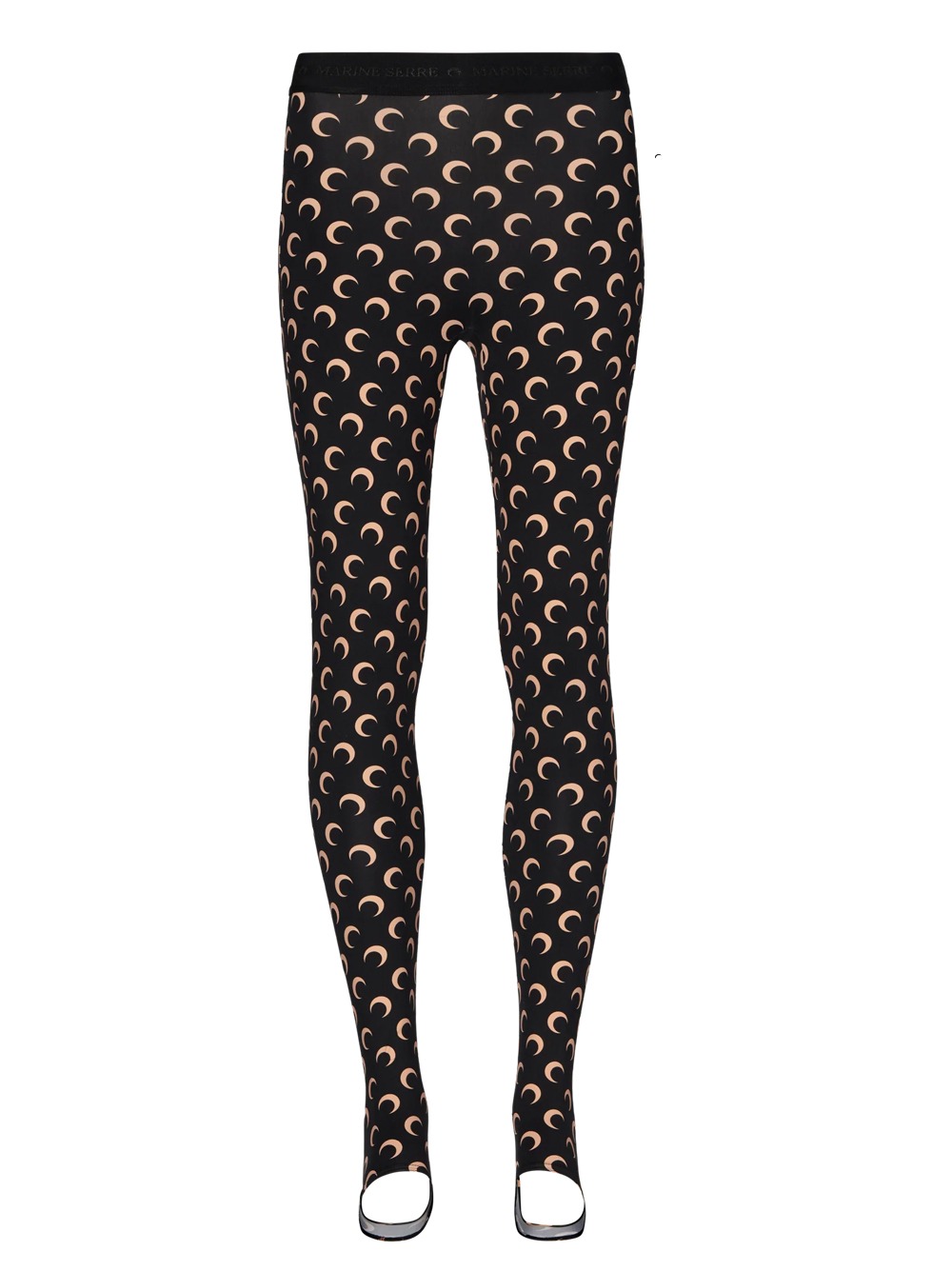 Leggins neri e beige di Marine Serre in Poliammide con vita elasticizzata e stampa Moon all-over.
