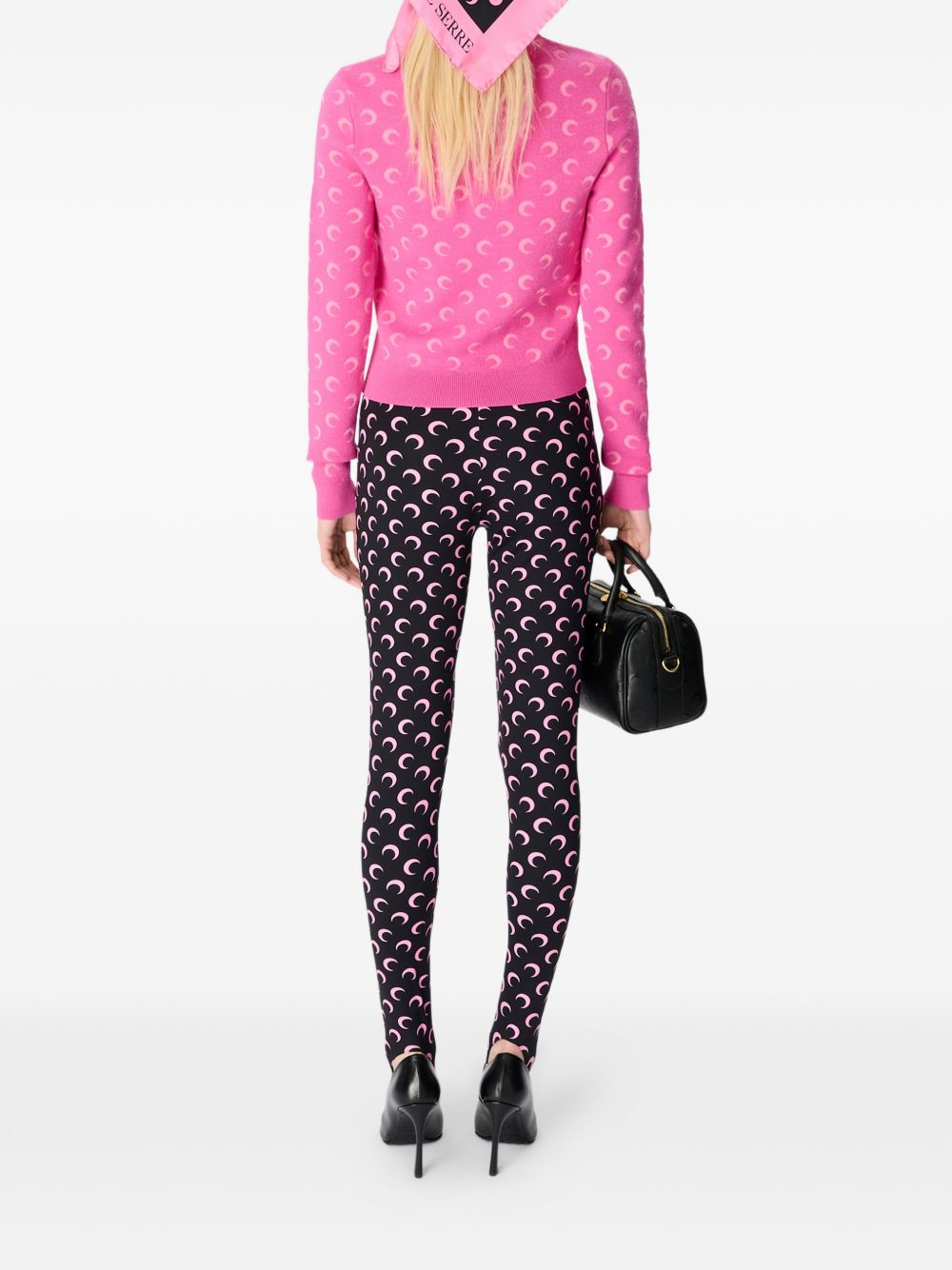 Maglione rosa di Marine Serre in viscosa e lana con girocollo, maniche lunghe, stampa Moon e orlo dritto.