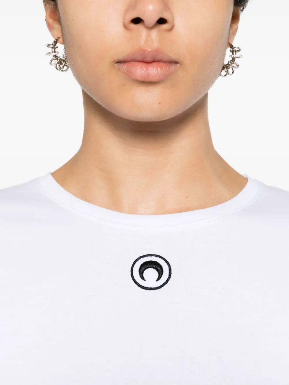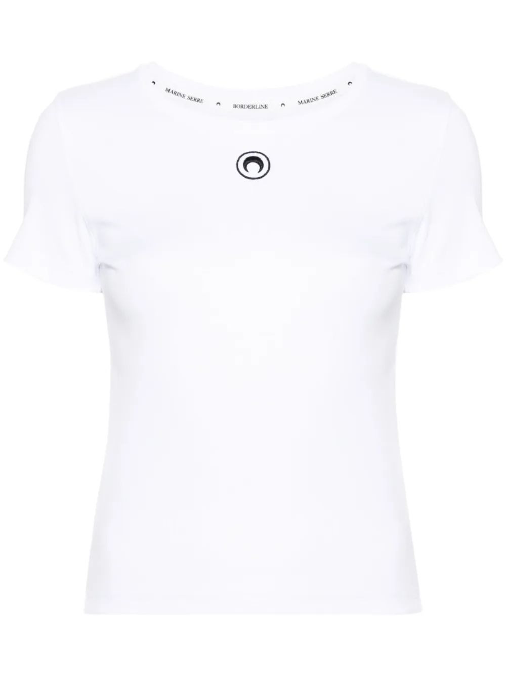 T-shirt bianca Moon Logo di Marine Serre in cotone con girocollo, CM logo e orlo dritto.