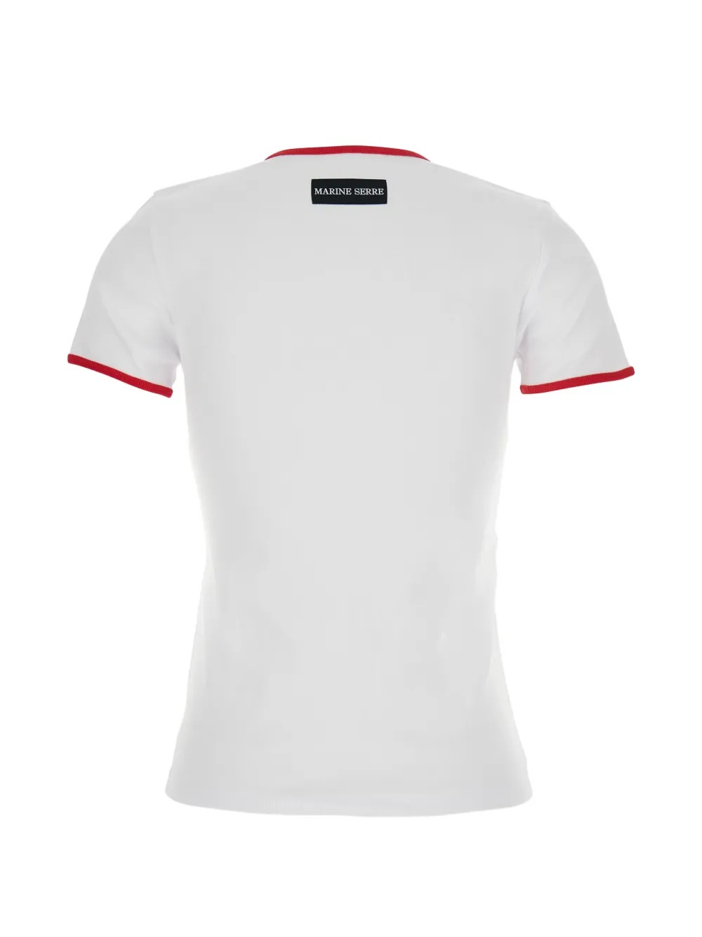 Marine Serre's white and red "Moon Logo Bicolor" cotton T-shirt with a crew neck, CM logo, and straight hem.