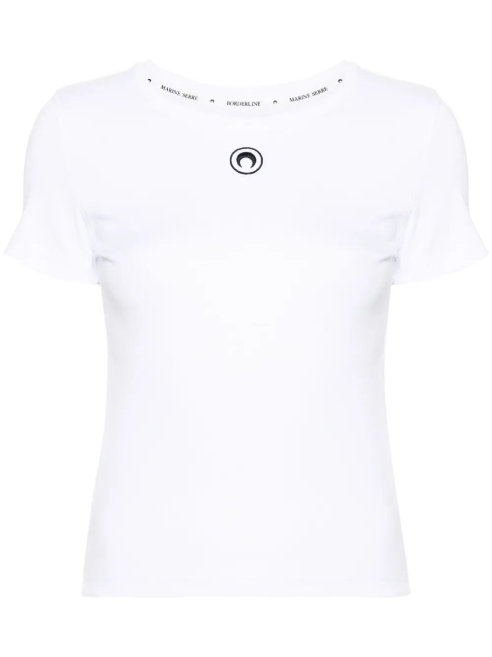T-shirt bianca Moon Logo di Marine Serre in cotone con girocollo, CM logo e orlo dritto.