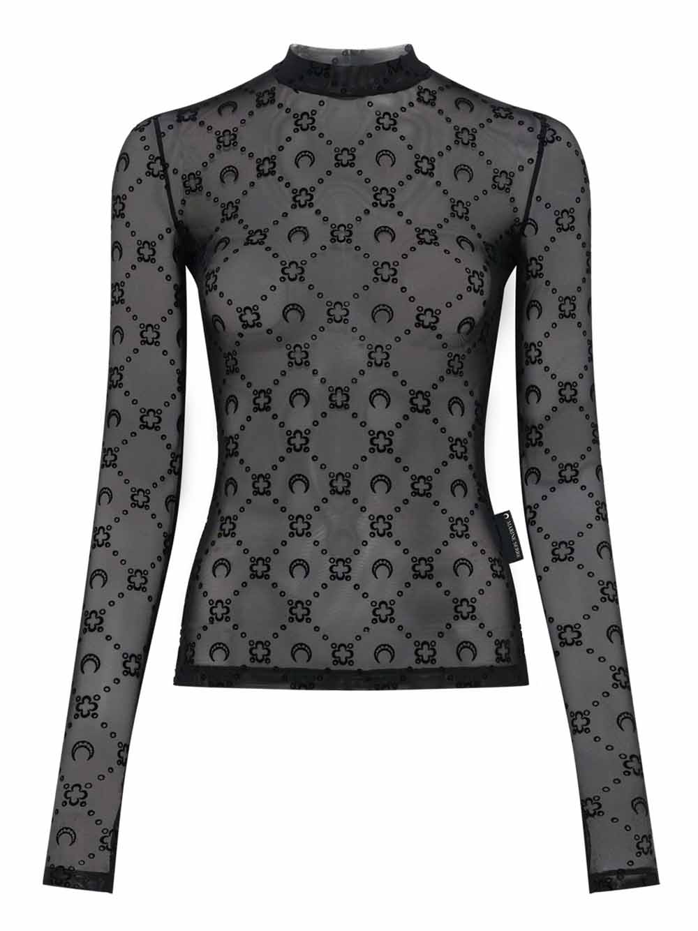 MOONOGRAM MESH FLOCK LS HIGHNECK TOP