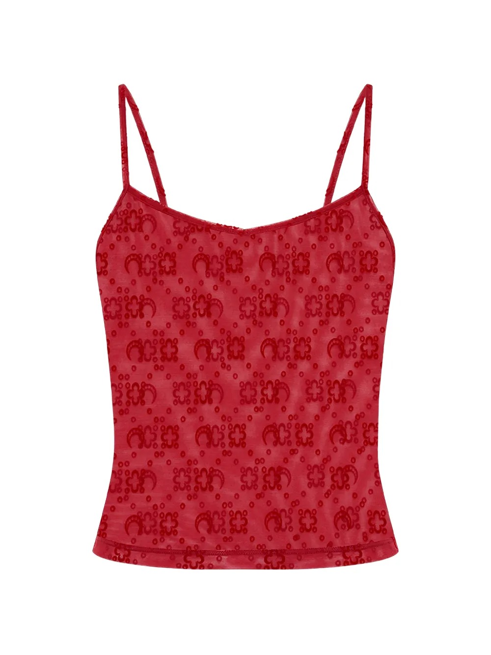 Top rosso di Marine Serre in poliammide spalline sottili, stampa all-over e orlo dritto.