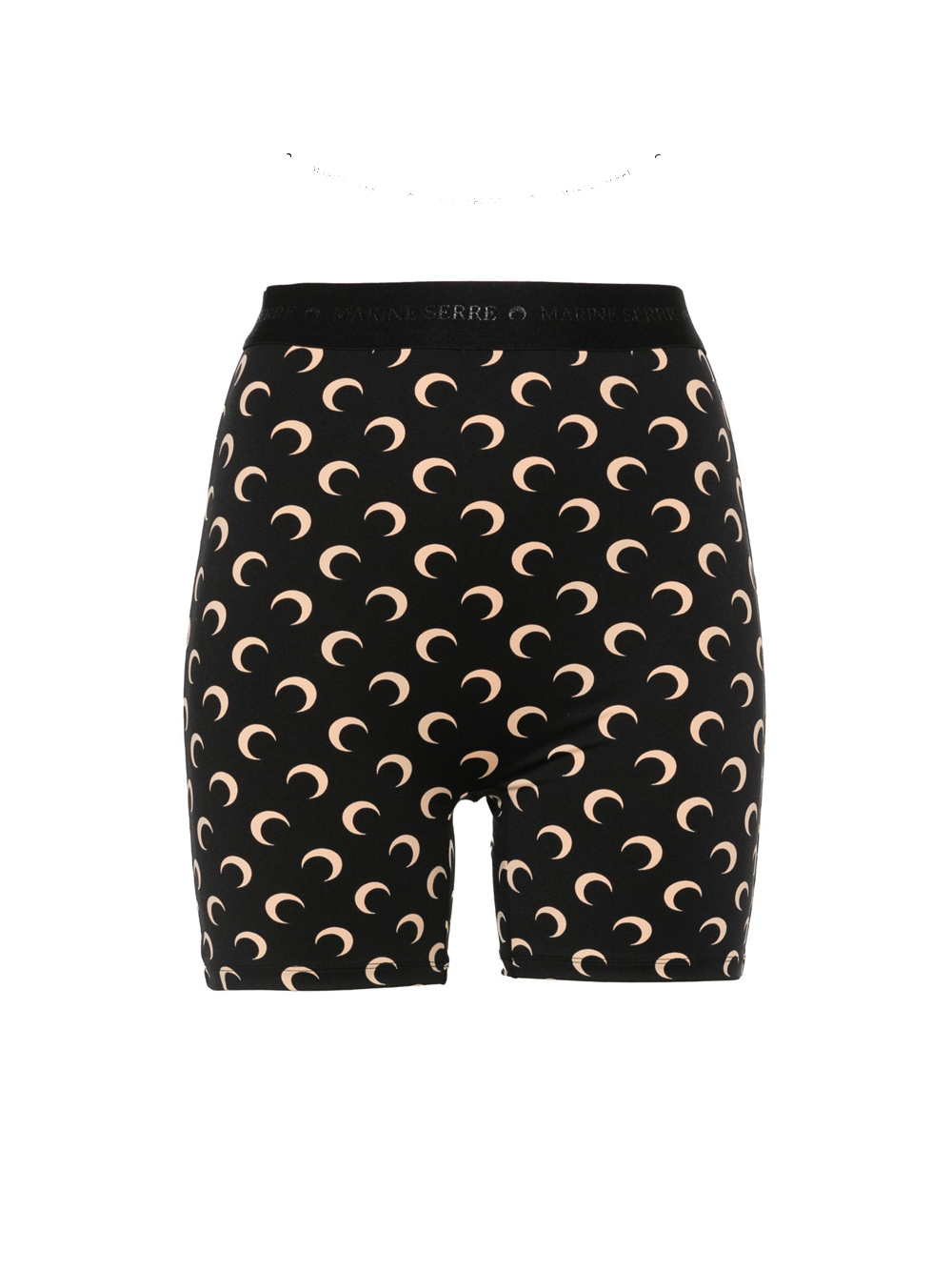 Pantaloncini neri e beige di Marine Serre in Poliammide con vita elasticizzata e stampa Moon all-over.