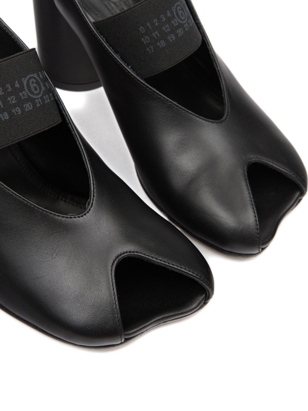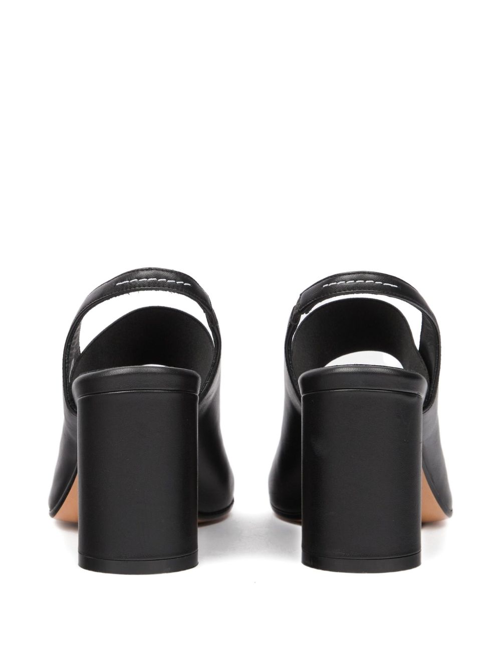 Slingback nere di MM6 Maison Margiela in pelle con fascia elasticizzata, punta aperta, tacco largo e cinturino posteriore.