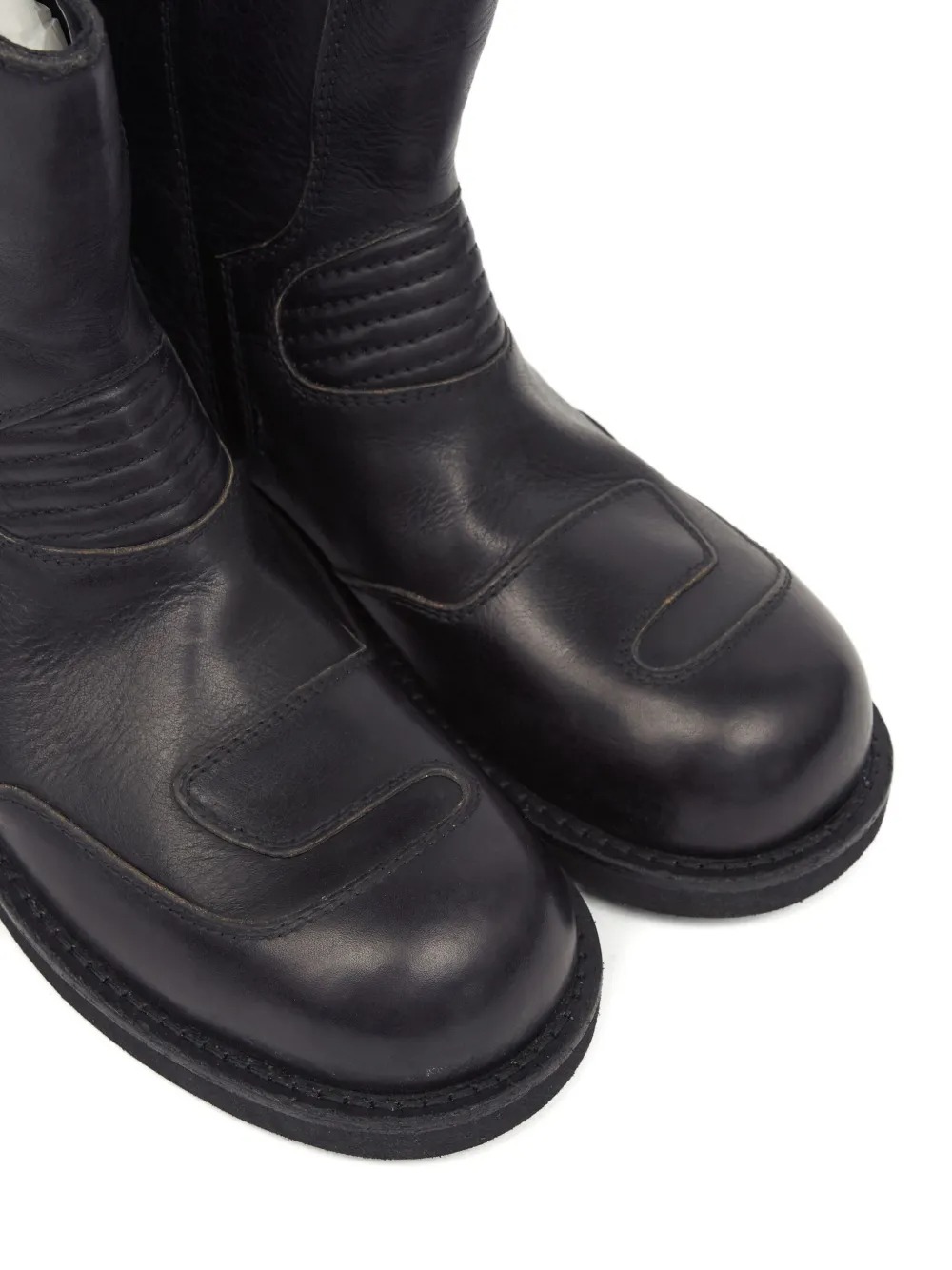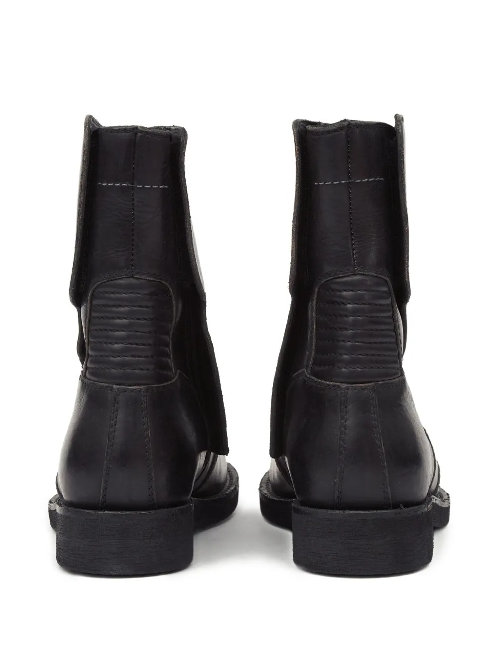 Stivali neri Ankle Boots di MM6 Maison Margiela in pelle con punta tonda, dettaglio con cuciture e suola chunky.