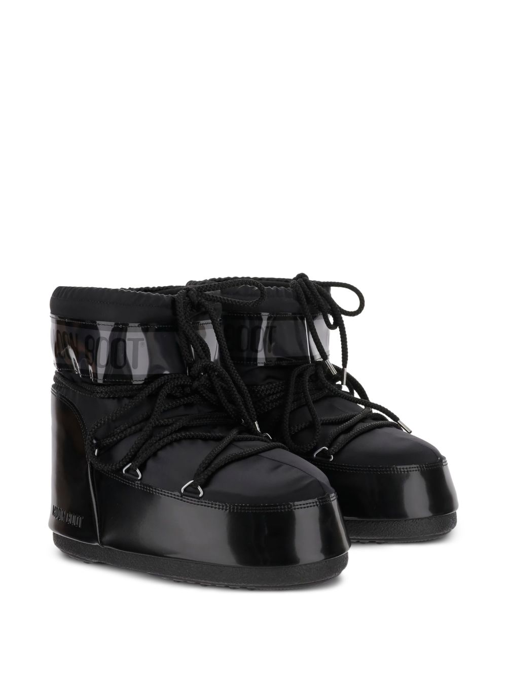 Stivali neri da donna Icon Low di Moon Boot con punta tonda, chiusura superiore con coulisse, design slip-on e imbottito, dettaglio con logo e suola piatta.