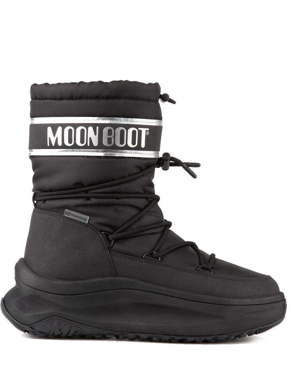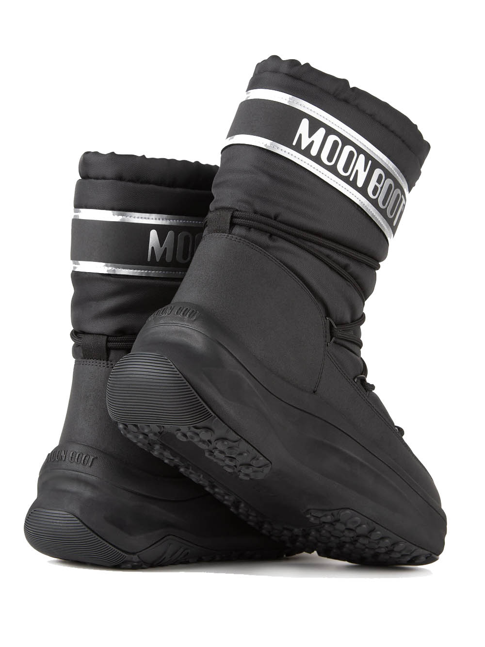 Stivali neri da uomo Moon 247 Polar di Moon Boot con punta tonda, chiusura superiore con coulisse, design slip-on e imbottito, dettaglio con logo e suola sagomata.