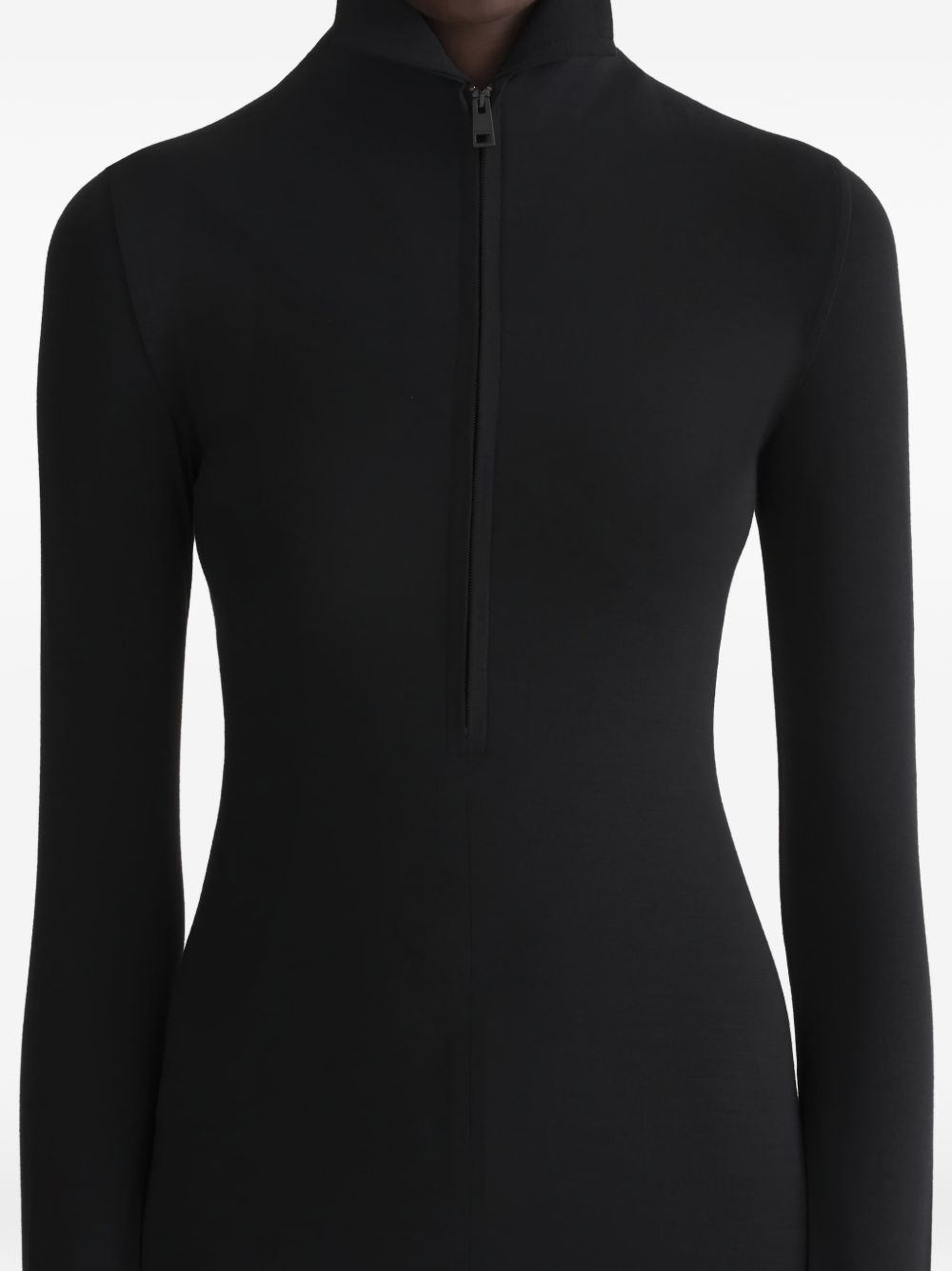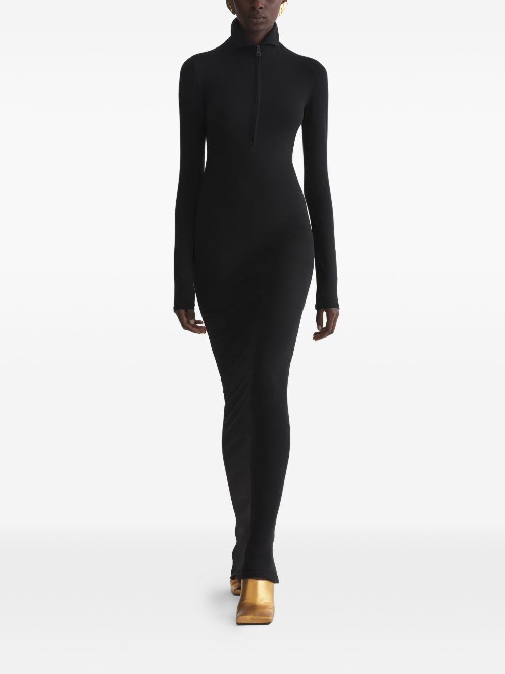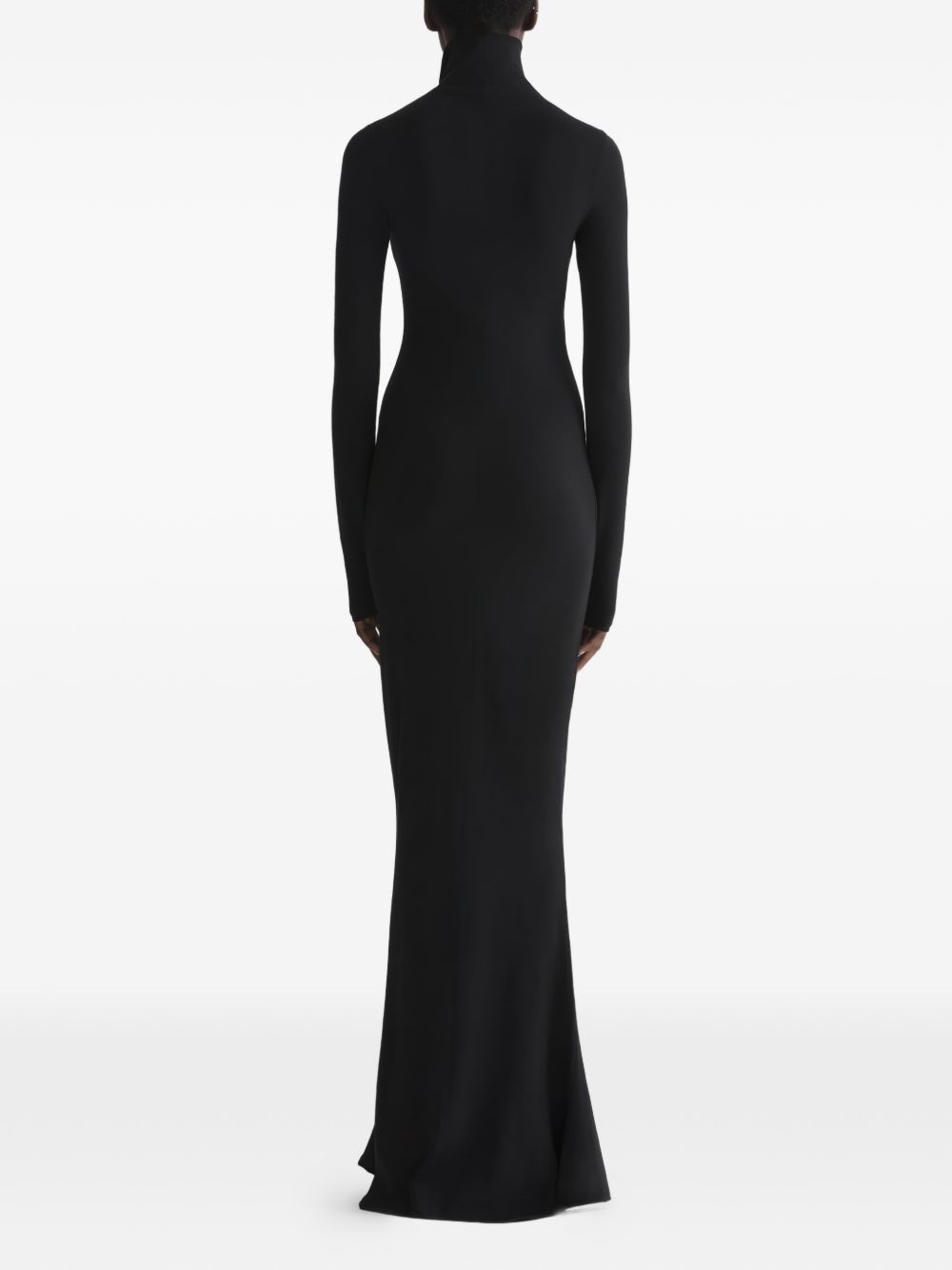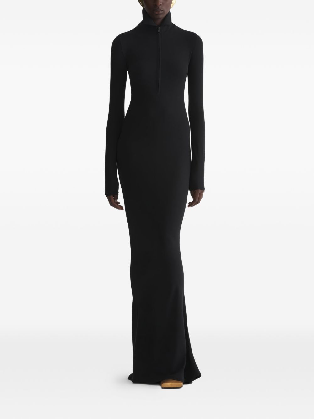 Abito lungo nero Column di Mugler in viscosa con chiusura con zip, maniche lunghe, collo alto e design aderente e orlo dritto.