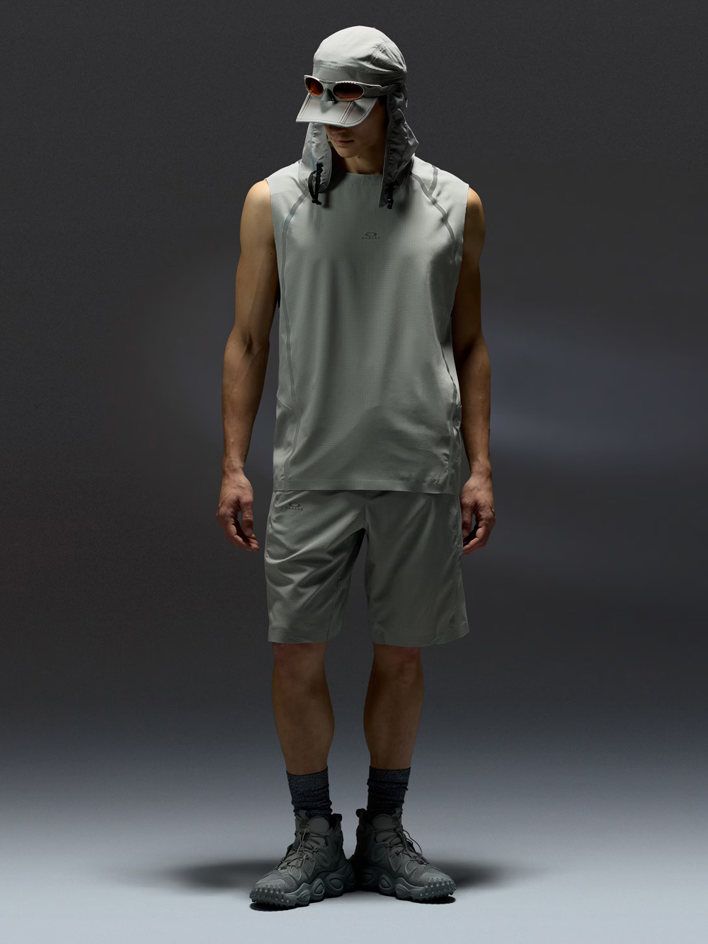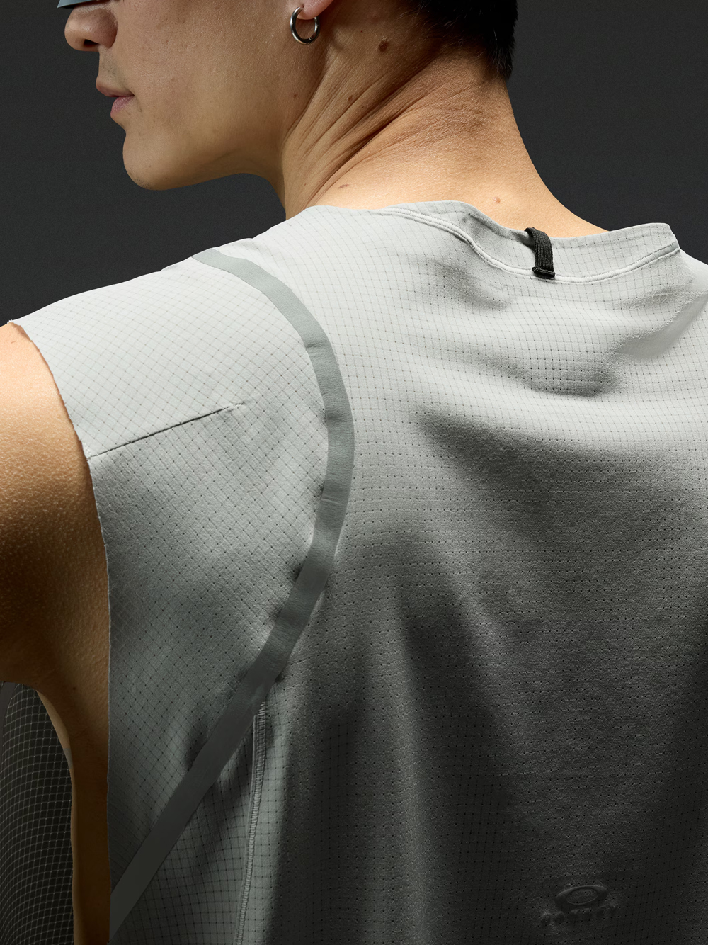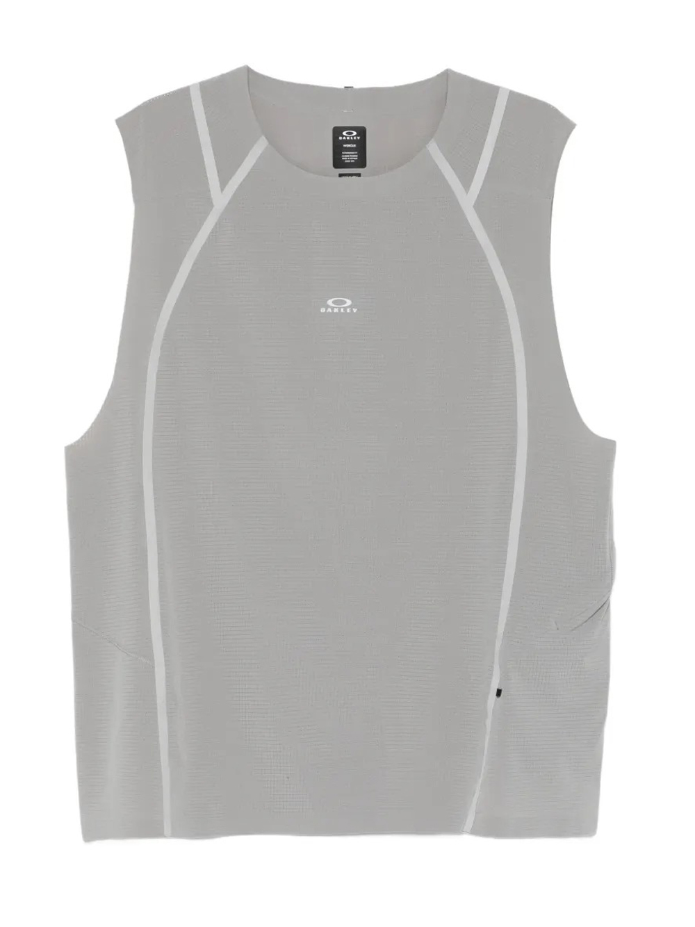 Canotta grigia di Oakley in poliestere con girocollo design senza maniche, termosaldature a contrasto e orlo dritto.