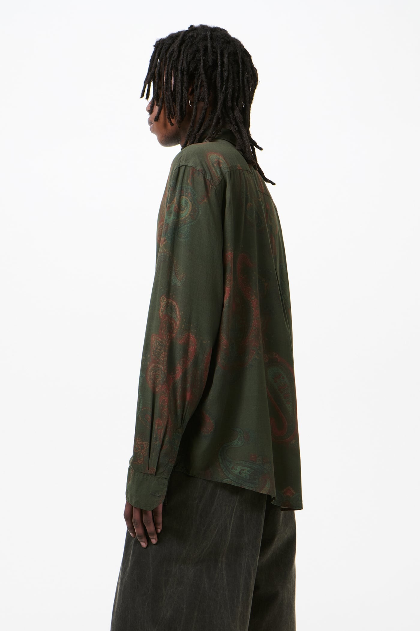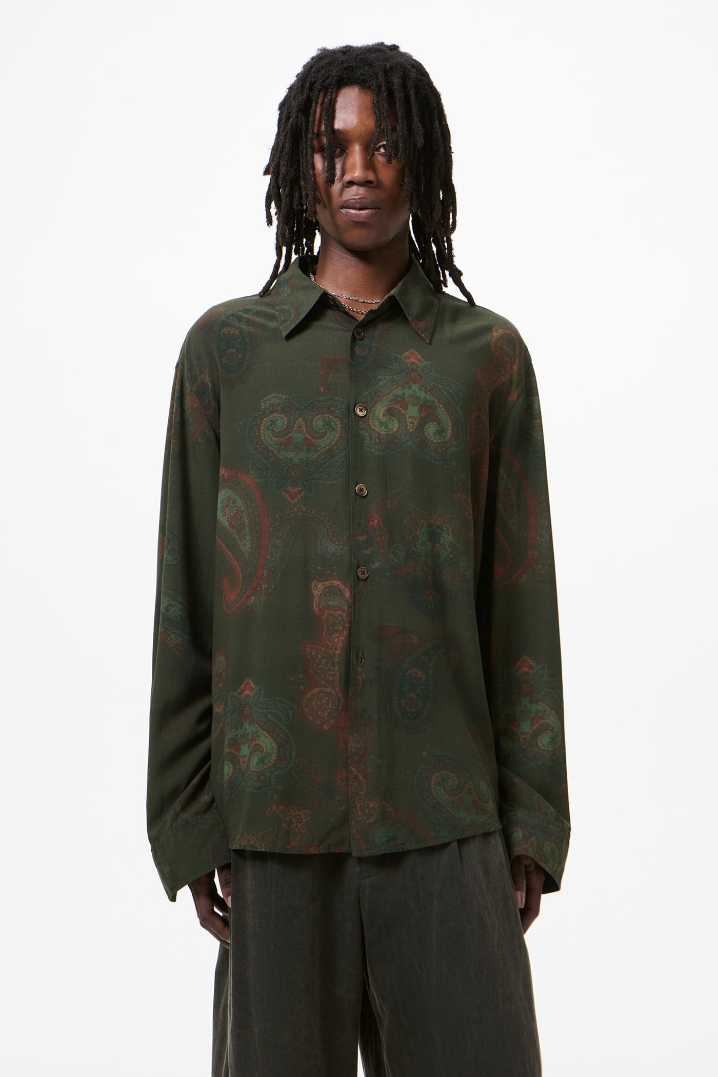 Camicia Beyond di Our Legacy in cotone con colletto bowling, chiusura frontale con bottoni e orlo curvo.