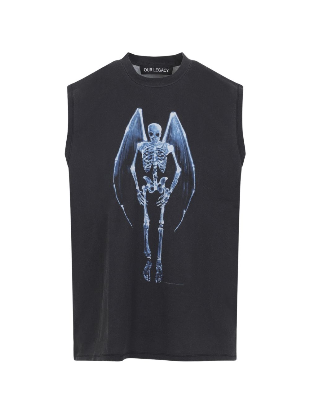 Canotta nera Breathe di Our Legacy in cotone con stampa Fallen Angel, senza maniche e scollo rotondo.
